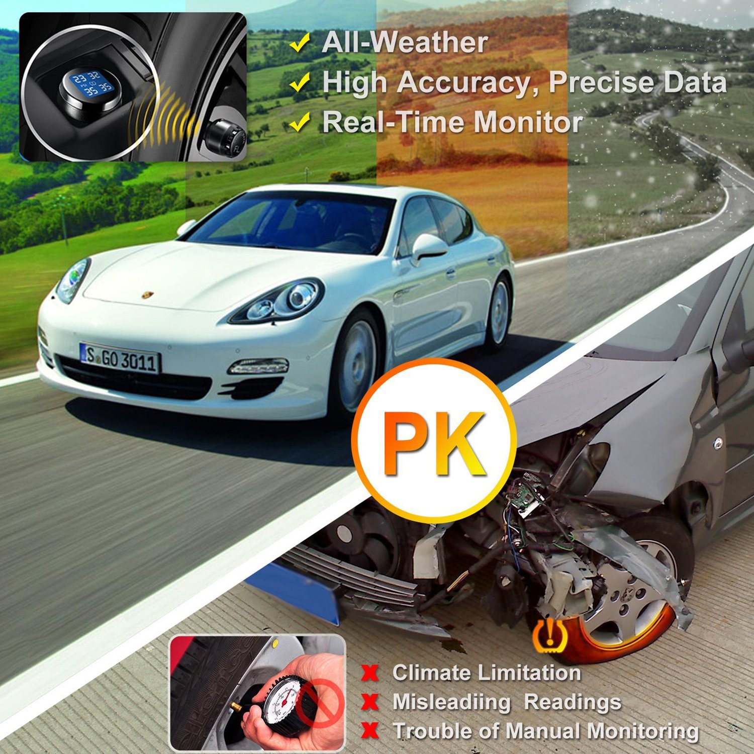 đăSpace-Saving with Cigarette PlugăPowered by its cigarette lighter plug, the TPMS is low power consumption and takes very little space in your car. Simply plug and mount the external tire pressure sensors so you can keep an eye on your tiresâ conditions for safe driving.