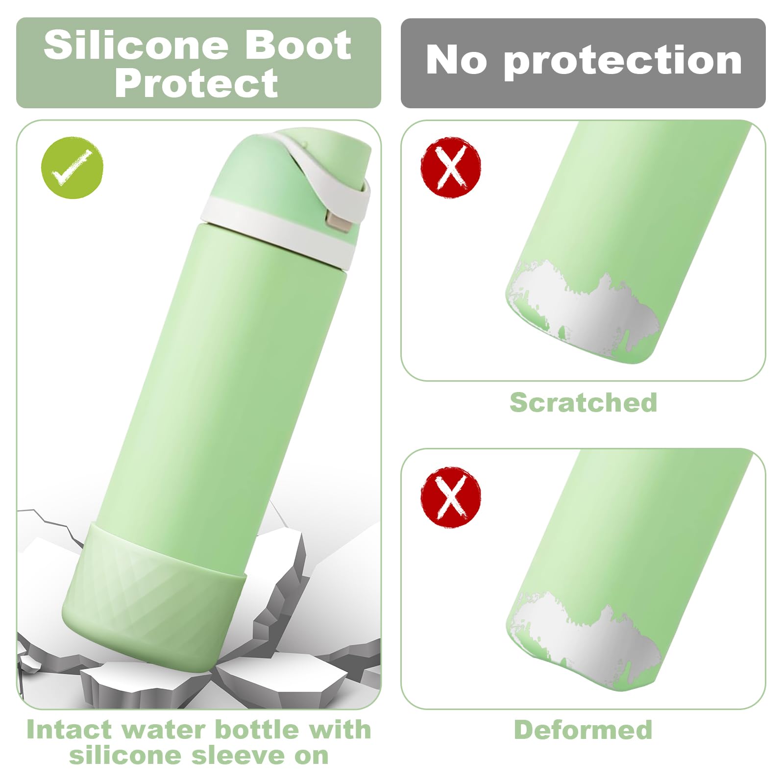 【Perfect Compatiblity】The silicone boot is suitable for Owala 24oz FreeSip, Twist, and Flip stainless steel water bottles. It is precisely made according to the size of the original cups, which perfectly fits the cup bottom and won't fall off easily.