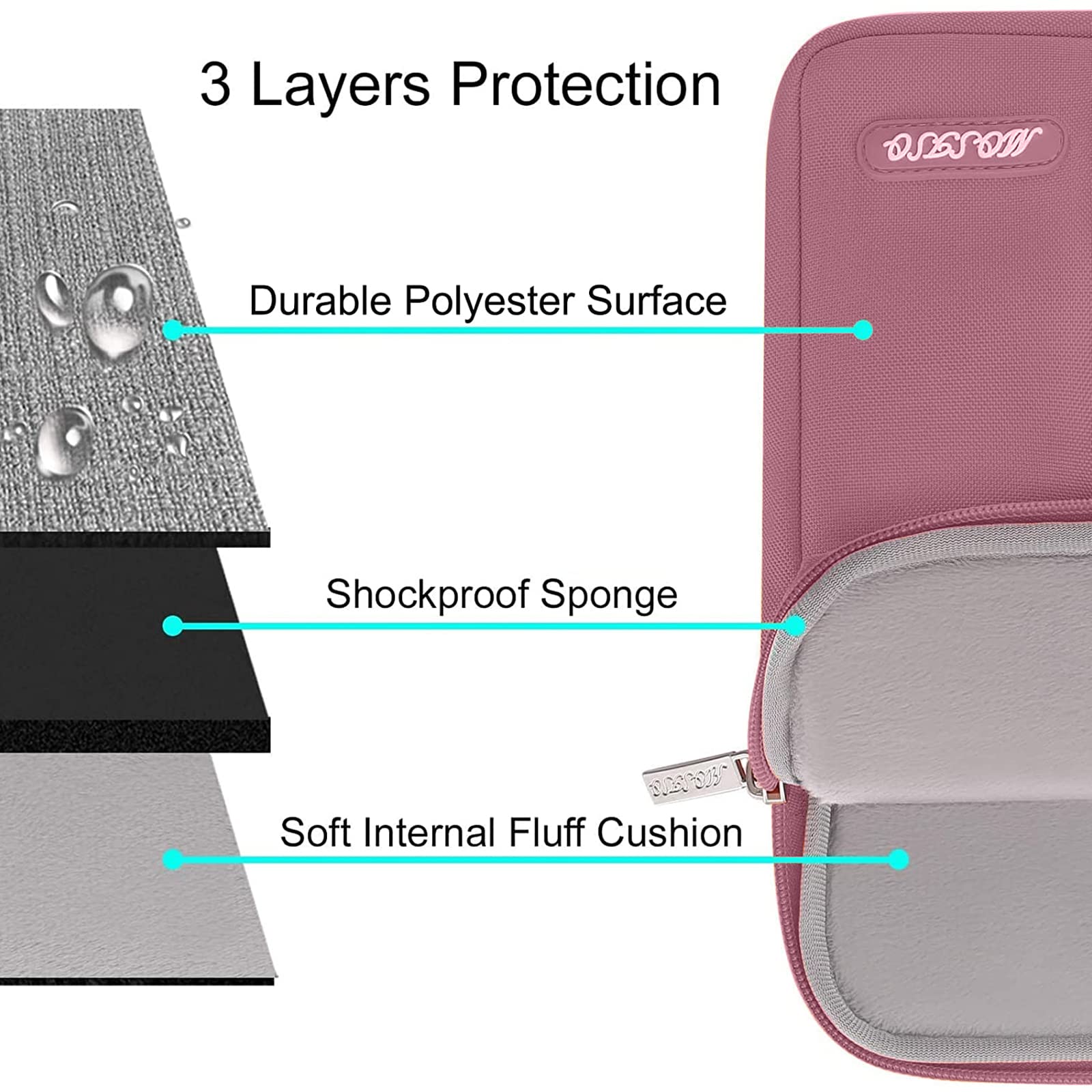 Features a polyester foam padding layer and fluffy fleece fabric lining for bump and shock absorption and protection of your device against bump, shock and accidental scratches.