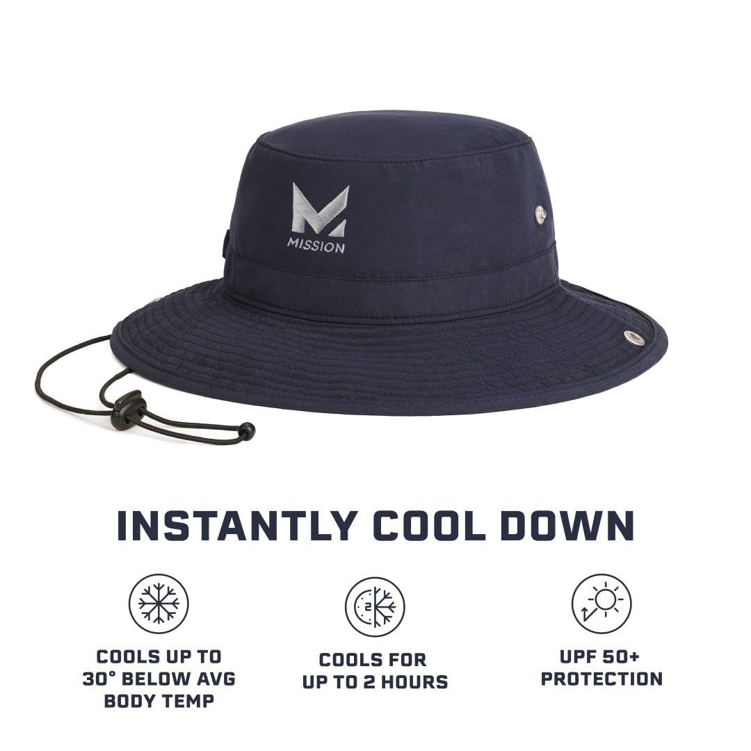 WATER & SWEAT ACTIVATED TECHNOLOGY: This cooling wide-brim hat incorporates advanced Wet-to-Cool Technology, which absorbs water or sweat to cool the hat by up to 30 degrees below average body temperature in under 1 minute. This innovative feature allows the hat to stay cool for up to 2 hours or longer with reactivation. By keeping cool, you can stay focused and dedicated to your activities without distraction. To activate your hat, simply follow these 3 steps: wet, wring, and wave.