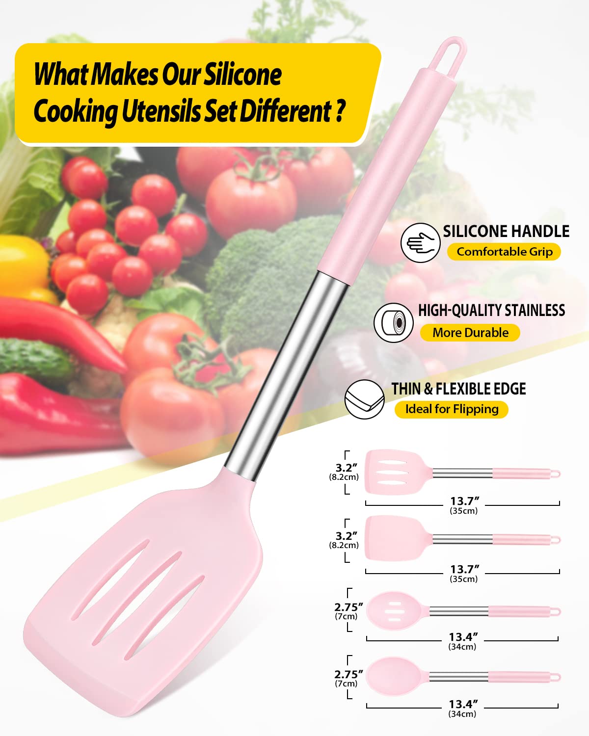 Thoughtful Design : The good-quality 18/8 stainless steel keeps you away from the trouble of kitchen utensils rusting or breaking; This anti-scald silicone handle is not easy to conduct heat and is more comfortable to hold than traditional utensils