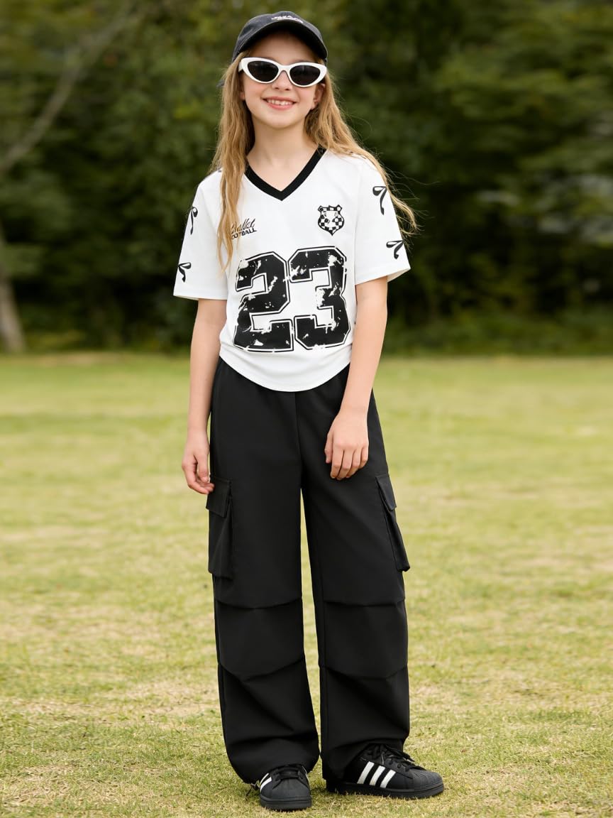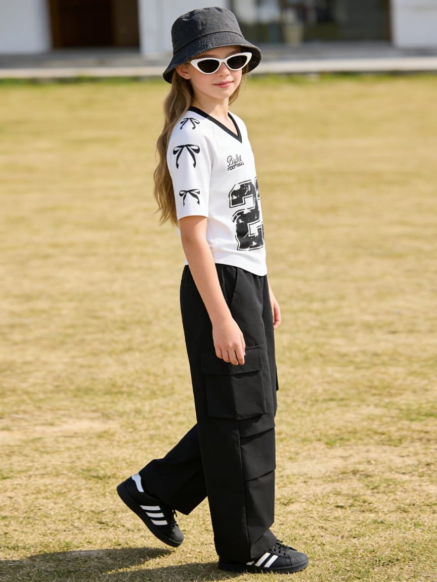 Functional Cargo Pants Design – Featuring multiple pockets and a relaxed fit, the cargo pants combine style with practicality. Adjustable waist ensures a comfortable and flexible fit for growing girls.