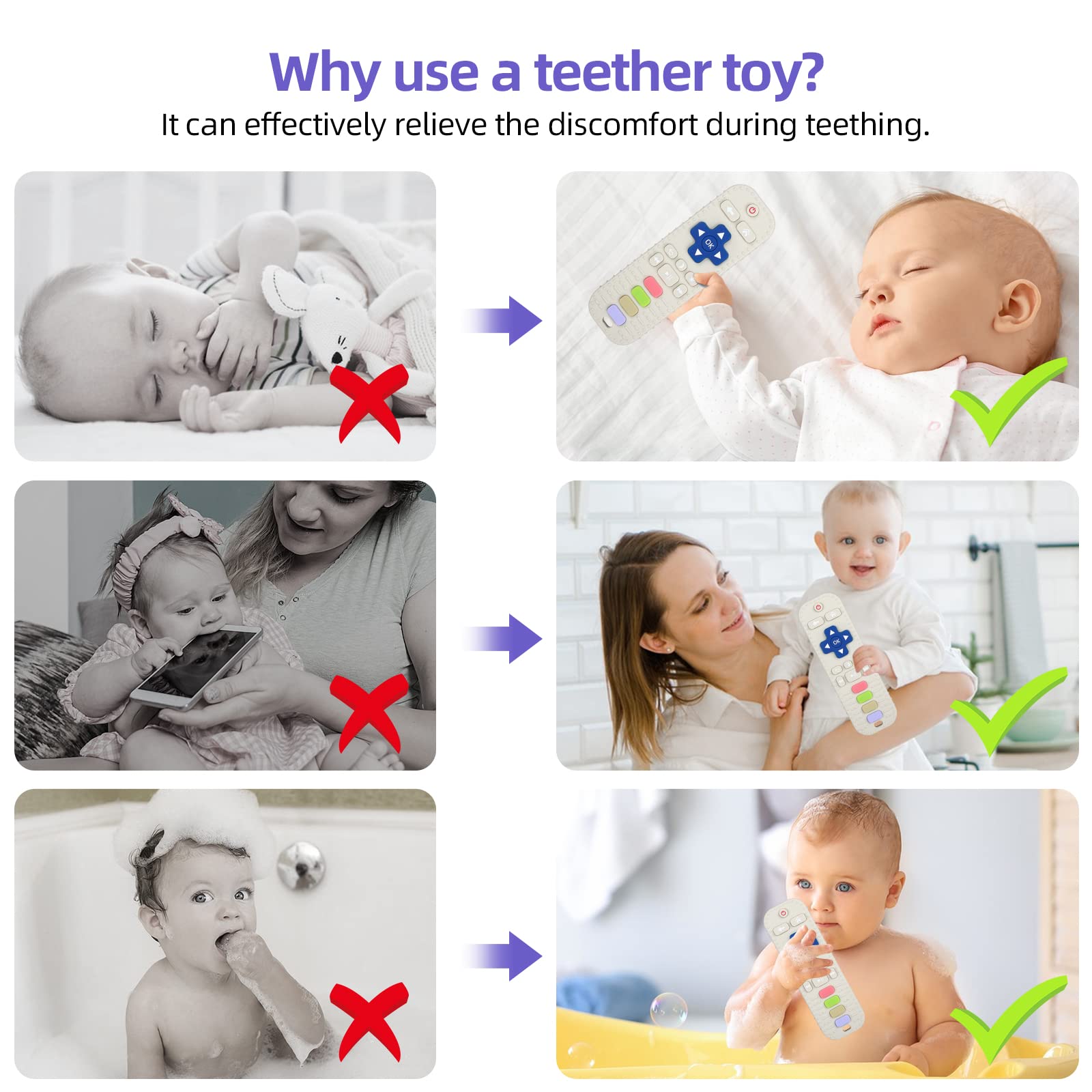 【Fun to play】Teething Toys are perfect for babies aged 3-24 months.They look like TV remotes for kids to play.