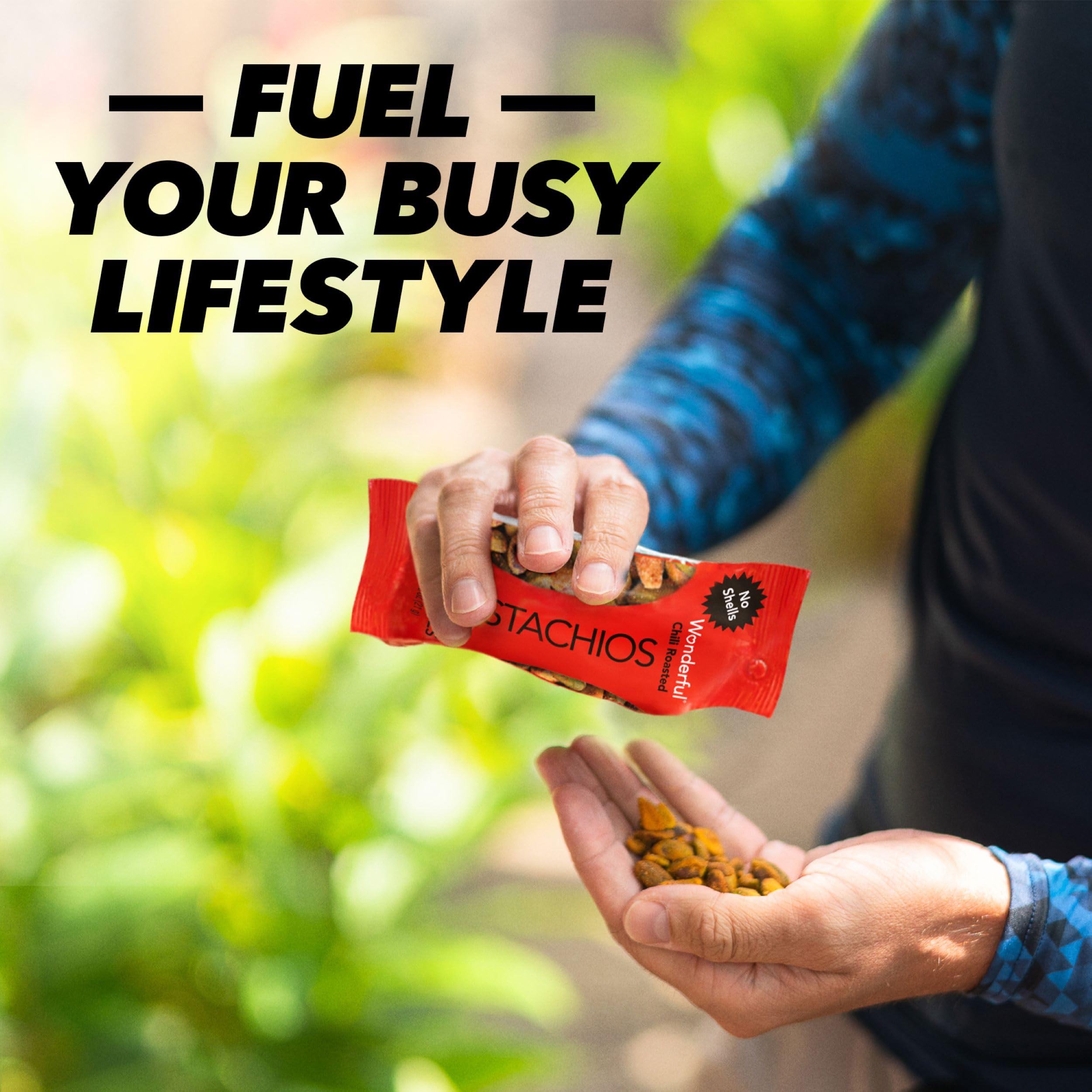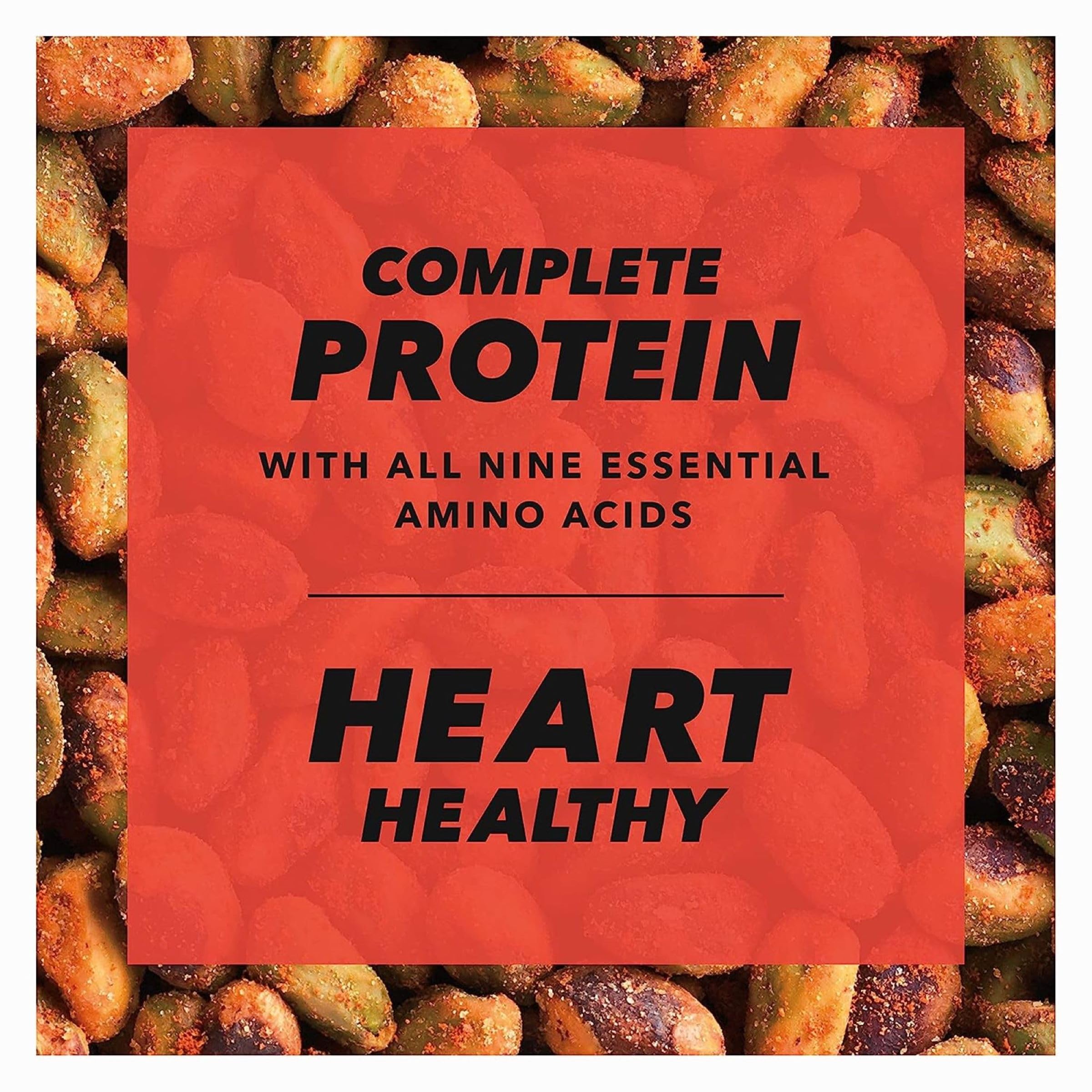 One Box of 8 individually wrapped 2.25 Ounce Bags of our Chili Roasted No Shells Wonderful Pistachios. Wonderful Pistachios have literally come out of their shells. Same delicious taste, but with a little less work for you. Turn up the heat with Chili Roasted Wonderful Pistachios No Shells. Theyβre bursting with the big, bold flavors of red pepper, garlic and vinegar to tingle your tongue and keep you craving more. Skip the shells and get spicy for Less Crackinβ, More Snackinβ. Wonderful Pistachios are a smart, healthy choice for folks around the world. Wonderful Pistachios grows all of its pistachios in Californiaβs fertile San Joaquin Valley. The warm days and cool nights work in harmony with the regionβs natural soils to create the perfect growing climate. We then carefully tend and harvest each pistachio using the latest in sustainable practices. Nutritious and healthy pistachios are great as part of an overall healthy diet. Pistachios are also a good source of plant protein. And in addition to tasting great, a single serving includes about 49 pistachios, enough to satisfy your snacking needs. Note: Contains Tree Nuts (pistachios).