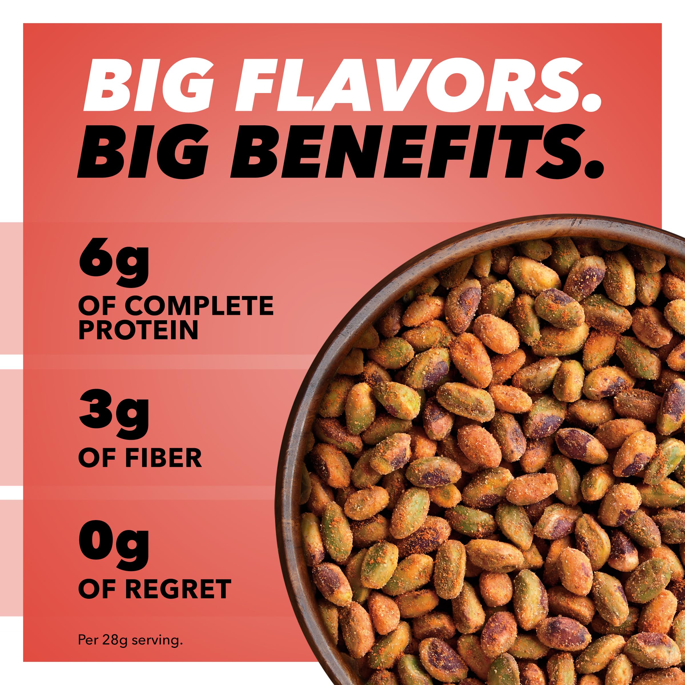 FLAVOR: Chili Roasted - Turn up the heat with our Chili Roasted Pistachios. They're bursting with big, bold flavors of red pepper, garlic and vinegar to tingle your tongue and keep you craving more. Great for snacking, & a crunchy salad topper.
