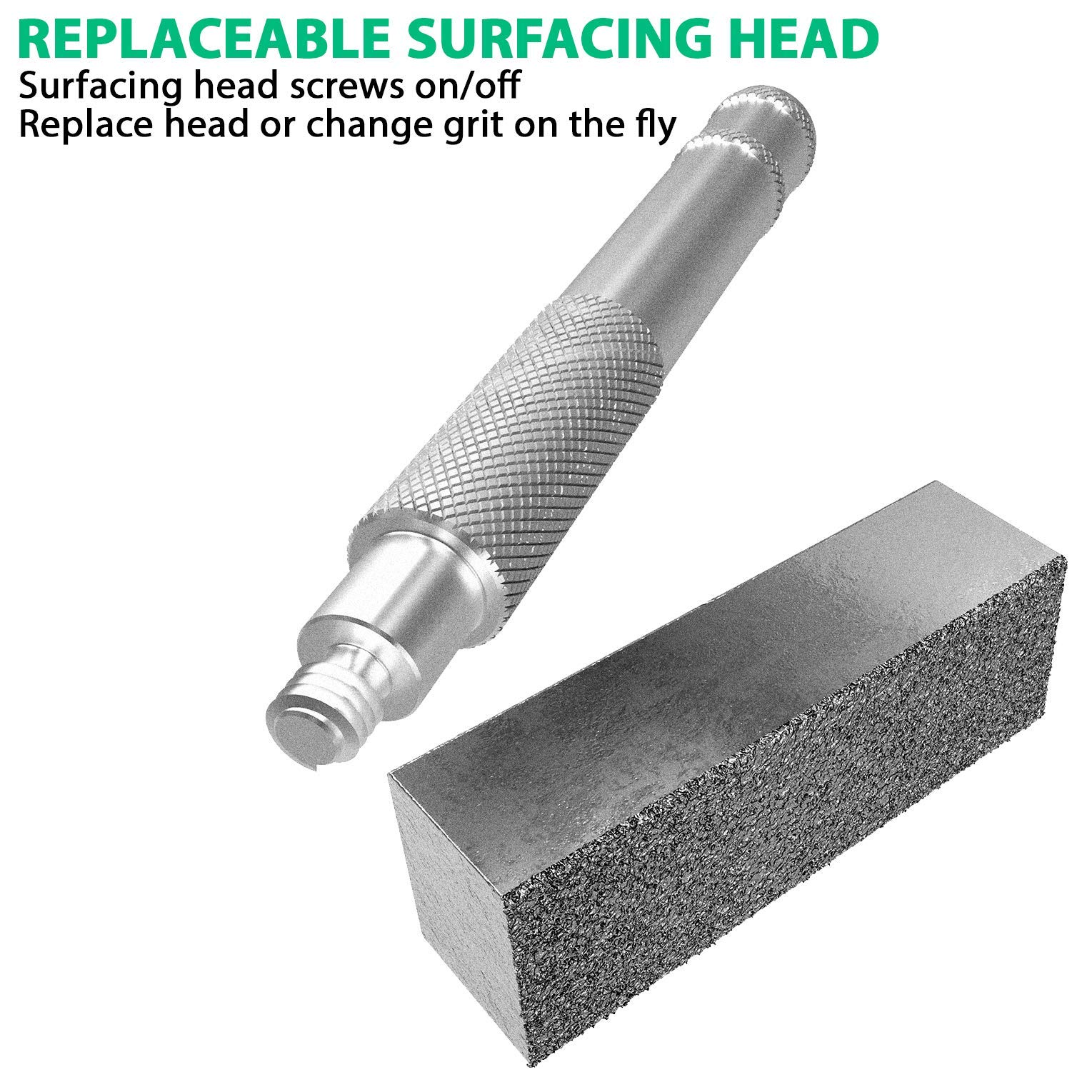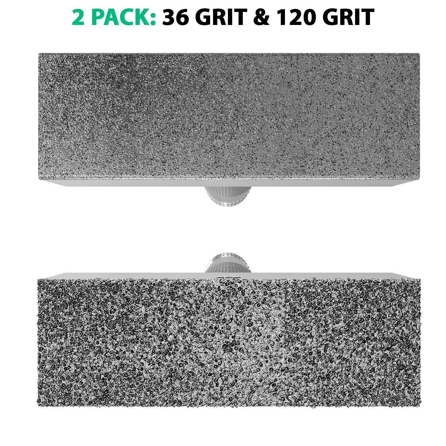 The ATLIN grinding wheel dressing tool is an indispensable set of bench grinder accessories used for restoring, truing, and sharpening your grinding wheels. As an abrasive wheel is used, it loads up full of material, clogging the pores and dulling the grains of the abrasive material. A dull wheel means you get to spend more time and effort grinding a work piece. The ATLIN grinder wheel dresser remedies this thanks to its industrial-grade diamond dressing stone. Firmly press the stone dresser up against your wheel and in under a minute you will see a clean, open, sharp cutting surface appear, ready to grind metal just like new. Unlike competing carbon steel alternatives, this bench grinder dressing tool features a 1.7” long surfacing head. The surfacing head is large enough to cover the entire face of your grinding wheels, therefore guaranteeing a square, even result. In addition, the industrial-grade diamond matrix will far outlast carbon steel alternatives. What are the dimensions and contents? (1x) 36 grit (1x) 120 grit Both are the same size. The tool has an abrasive surface area of 1.77” x 0.58”, Overall tool length is 4.5”, Knurled handle length is 4.0” Can the head be replaced? Yes, the surfacing head simply unscrews from the handle and can be replaced when worn down How long does the surfacing head last? This depends entirely on your usage and is impossible to guarantee. For the average hobbyist, the diamond wheel dresser should last a number of years.