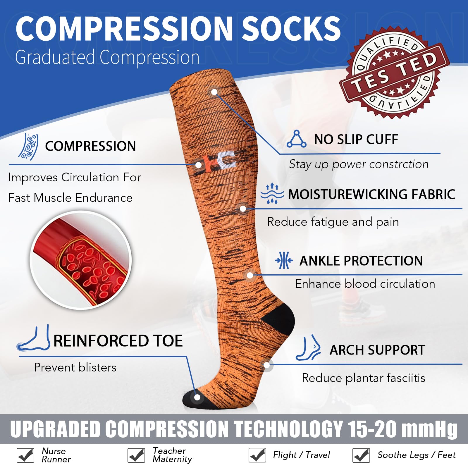 COMPRESSION SOCKS - 8 pairs of quality socks with unique color combination,it is perfect for 8 working days without daily wash, As you might know Copper is a great conductor of electricity. Through our socks, we are extending its natural property to rejuvenate blood circulation through your legs through copper fibers capable reviving blood circulation along with providing a 20-30 mmHg compression.