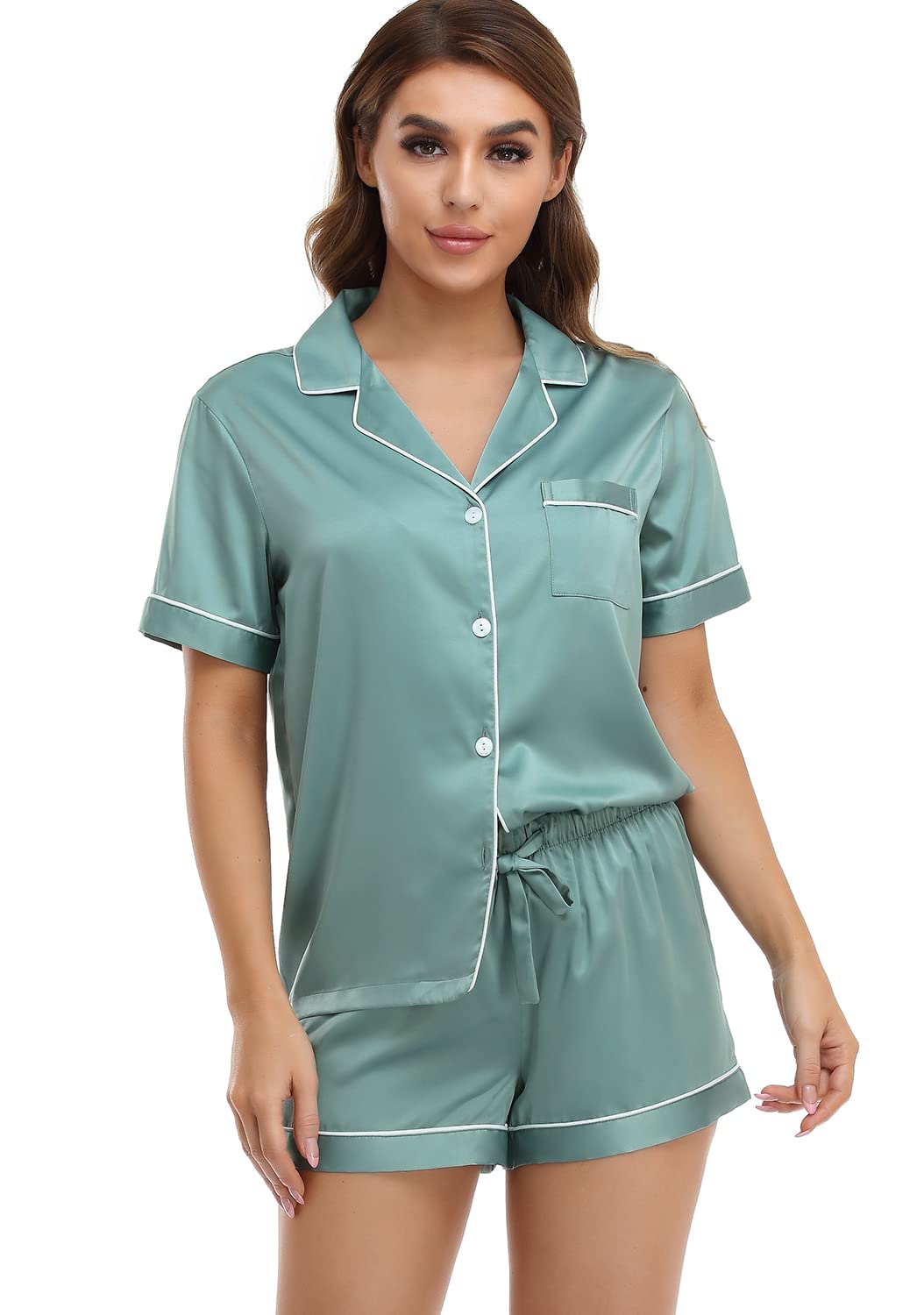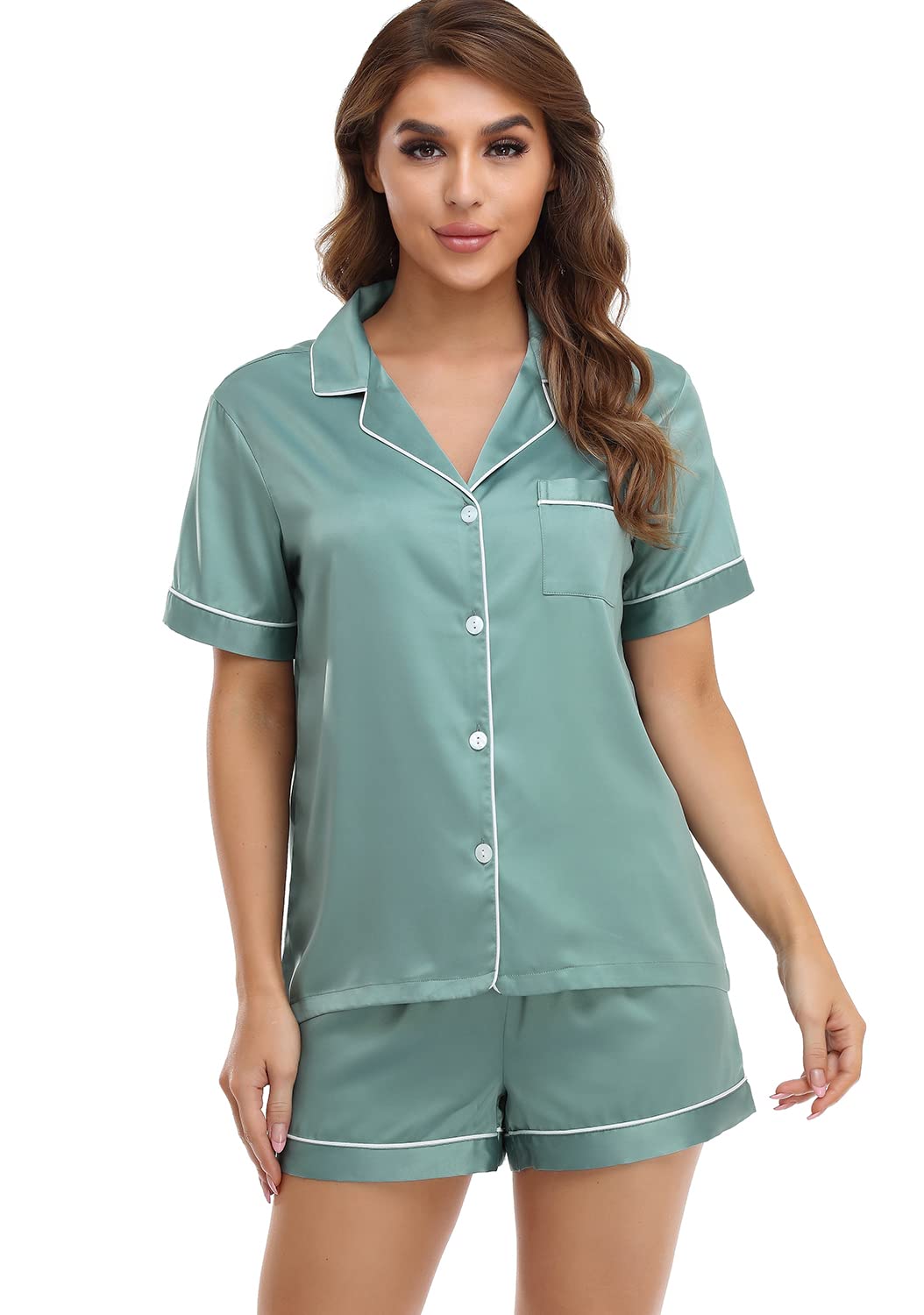 COMFORTABLE FABRIC: Made of high quality silk-like satin fabric, this pajama set is soft and lightweight, perfect for sleeping, lounging, or daily casual wear.