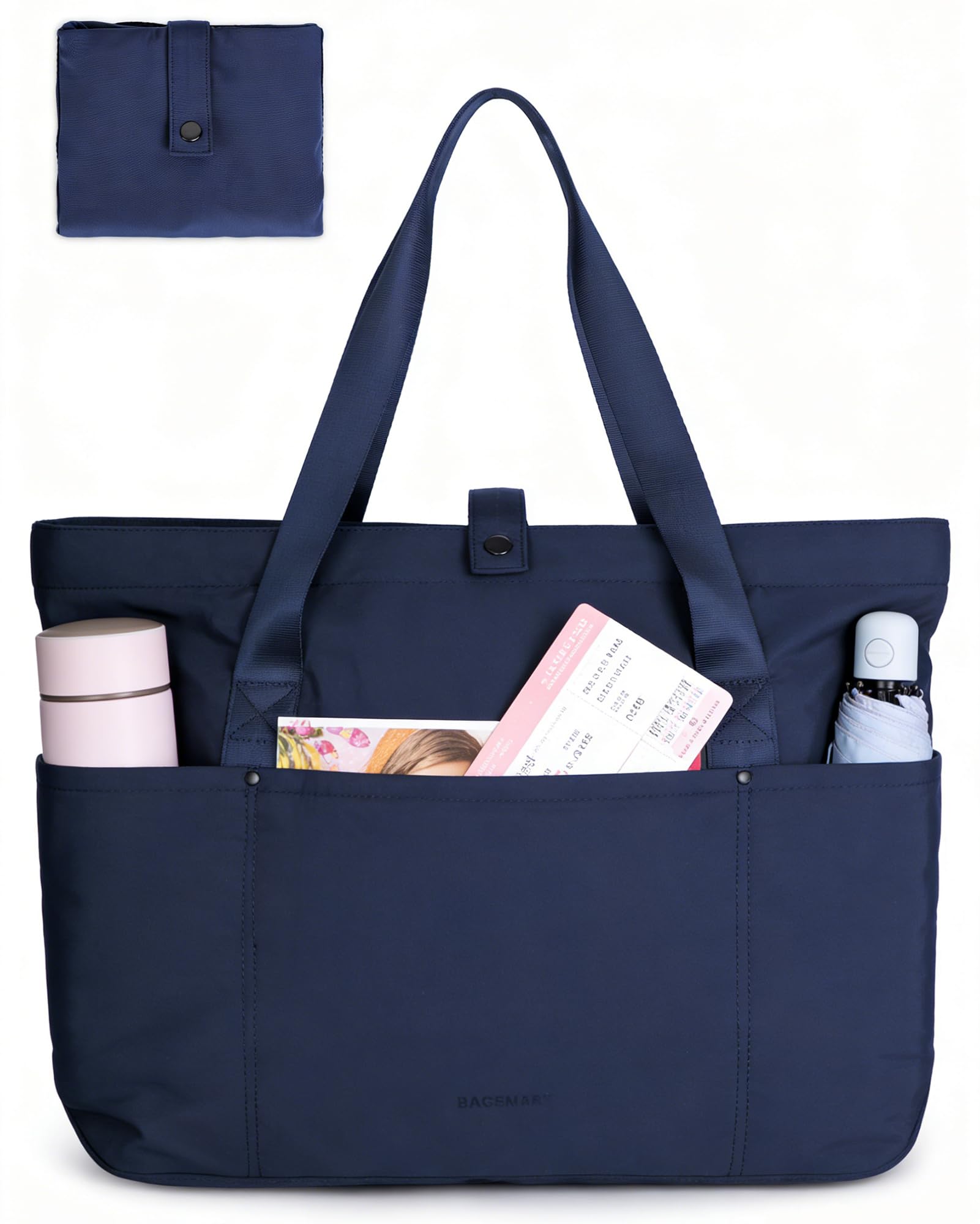 Large Size and Foldable-Unfolded: 16.5''L x 6''Wx 14''H, Folded: 7.9'' x 7''; This large tote bag has a huge capacity and can hold A4 books and 15.6-inch laptops. The travel tote bag can be folded into a small pouch, easy to put into your backpack, travel bag, duffle bag or suitcase, save your space.