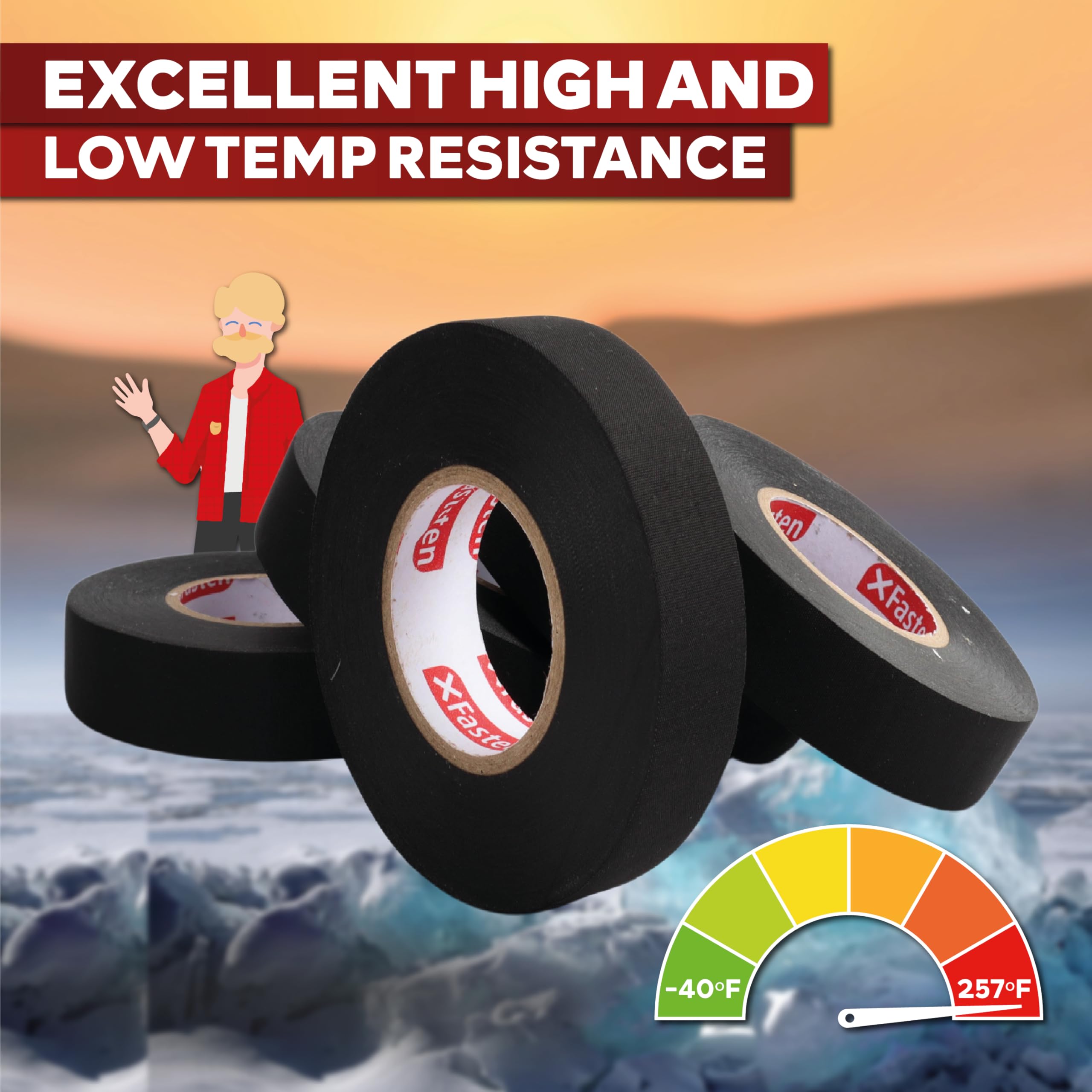 High temp Wire Harness Automotive Cloth Tape with excellent sound and rattle dampening performance. Lessens coil whining and lasts well against elevated temperatures (-40℉ - 257℉).