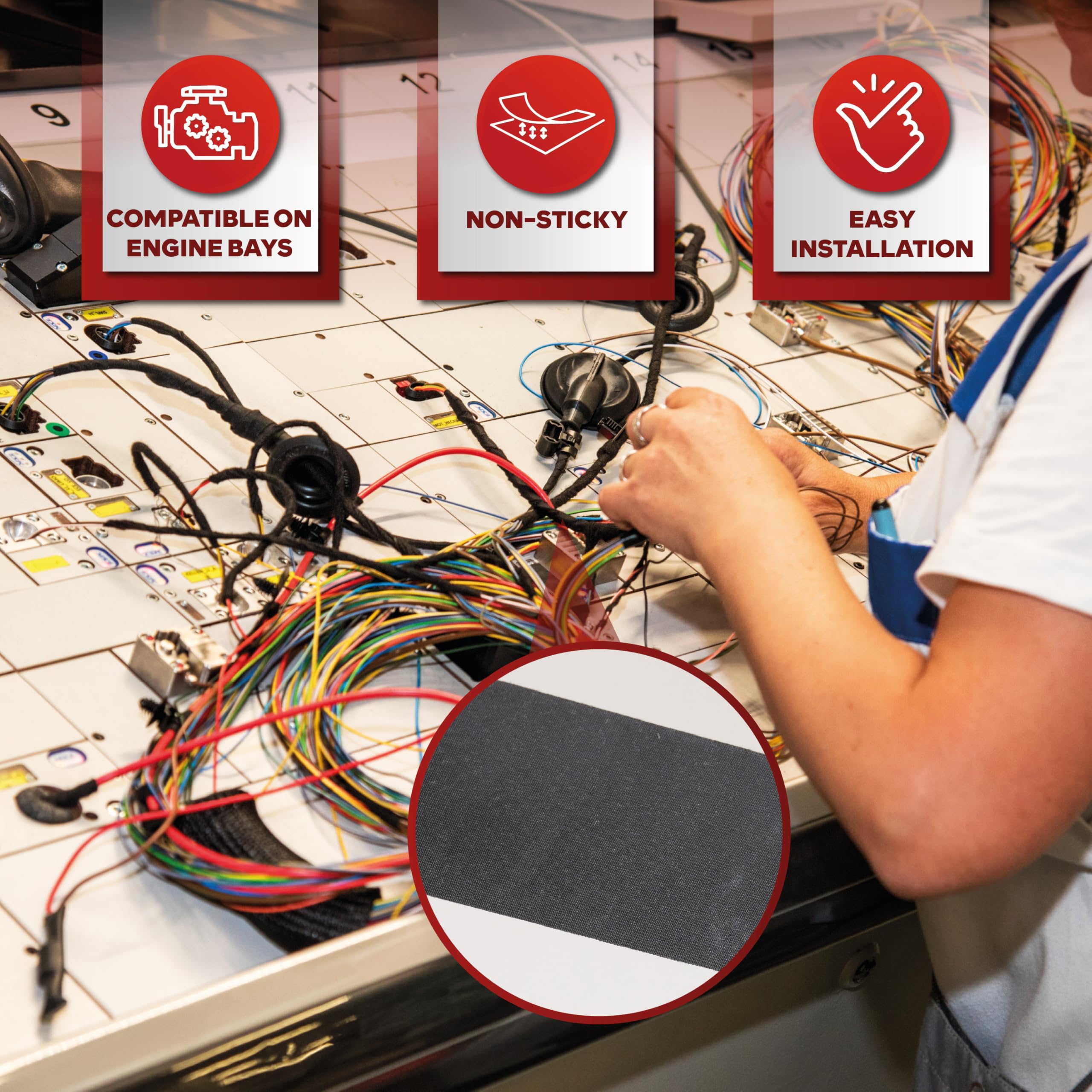 This engine tape wrap is similar, if not better, in thickness, tensile strength and looks with OEM wire harness tapes. Extra-sticky adhesive enables users to bundle hard-to-reach cables quickly.