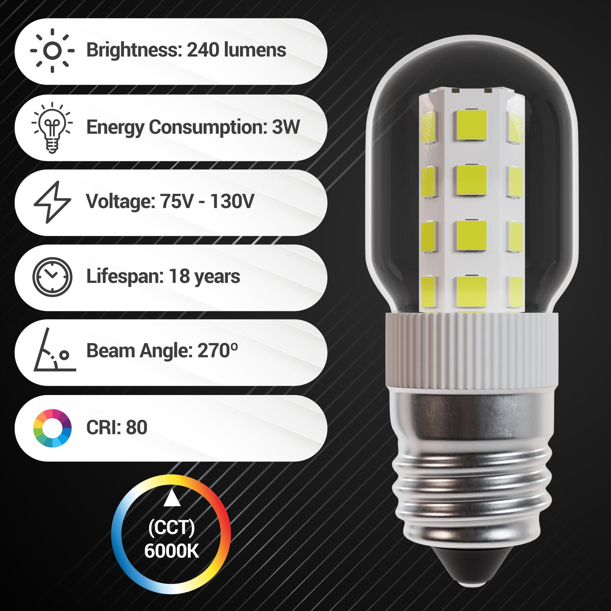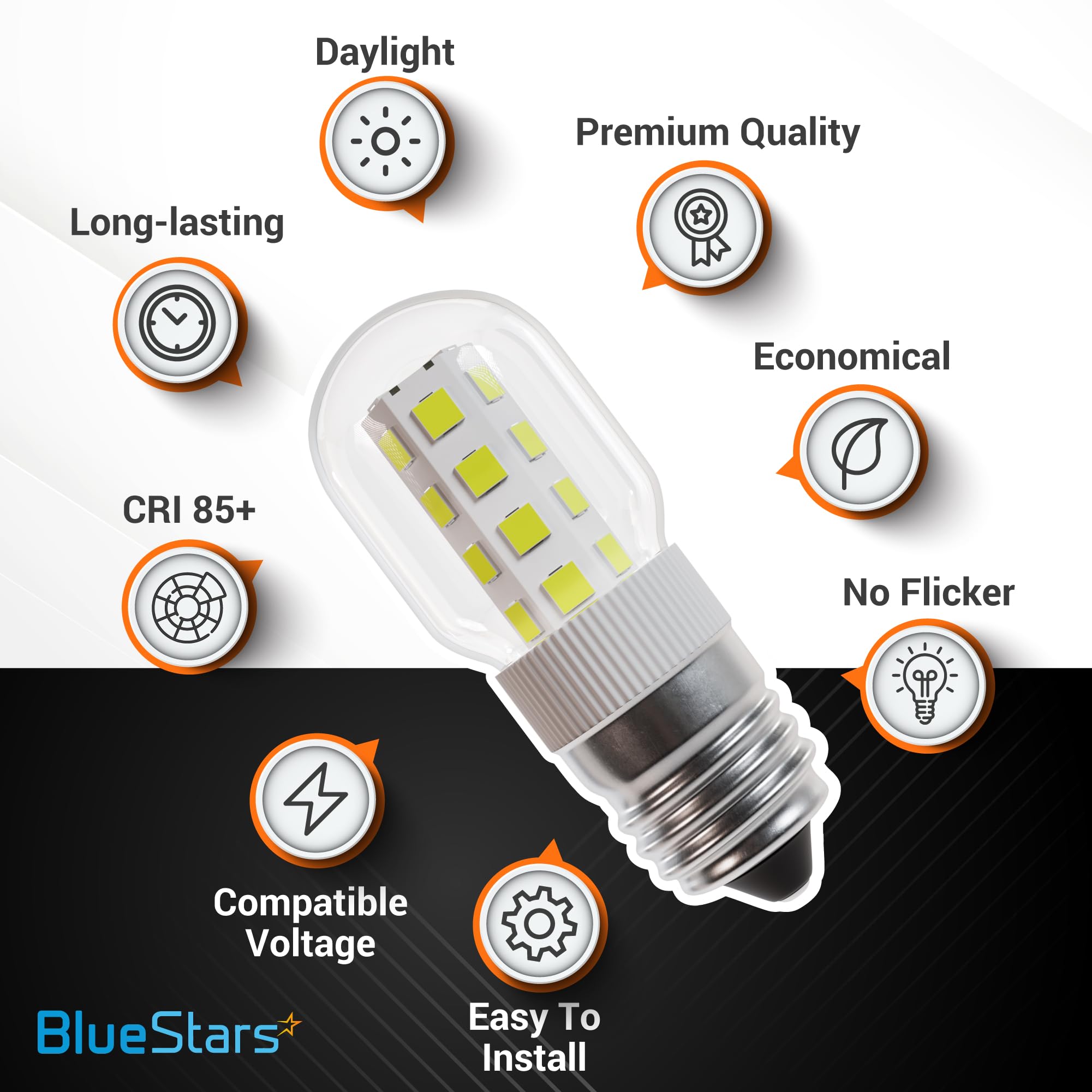 Easy to install & Wide use: BlueStars 8206232A LED Light Bulb is compatible with an E17 American standard base, it can be easily integrated into any standard E17 lighting fixture. Ideal for homes, offices, and other commercial spaces. Perfect for replacing bulbs in your Refrigerator, Microwave, Oven, or Range Hood, this dynamic lighting solution will make your food look absolutely delectable.