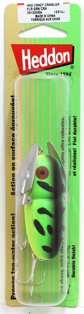 The legendary Crazy Crawler has been producing big fish for avid users for more than half a century. These wildacting topwater lures literally crawl across the surface, creating a trail of splashing action as they go. Their perfectly tuned metal wings slash from side-to-side to create a cadence on the water that drives all species wild. Heddon’s Crazy Crawler provides just the right action for almost every fishing condition