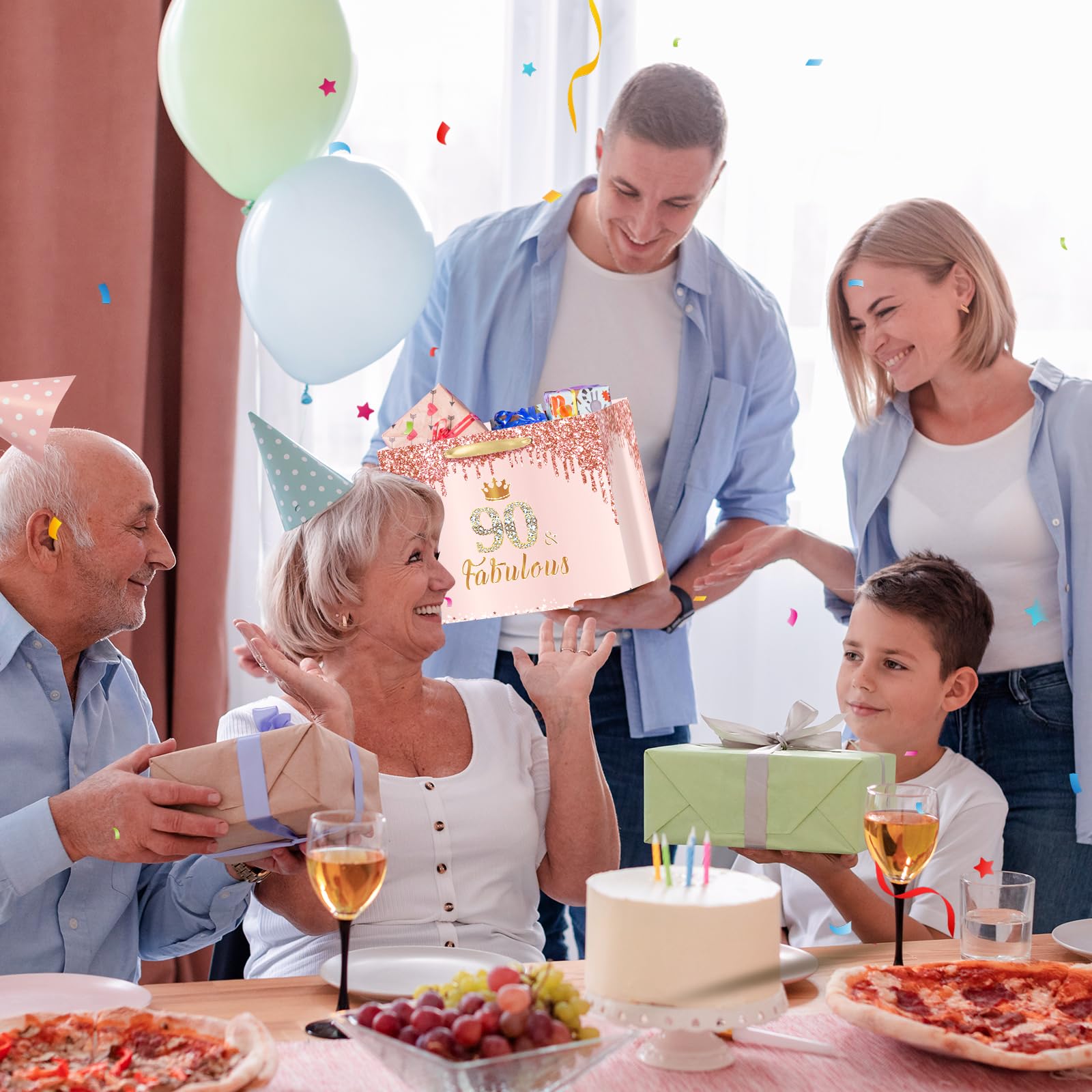 đăWide ApplicationăThe rose gold happy 90th birthday gift bag for women is suitable for 90th birthday gifts and 90th anniversaries gifts. Great 90th birthday gift bag for women, wife, girlfriend, friends, daughter, family etc. Moreover, this large 90th birthday gift bag with 90th birthday greeting card and wrapping tissue paper can also be used as Christmas gifts or a birthday party decoration, which can make your party more impressive.