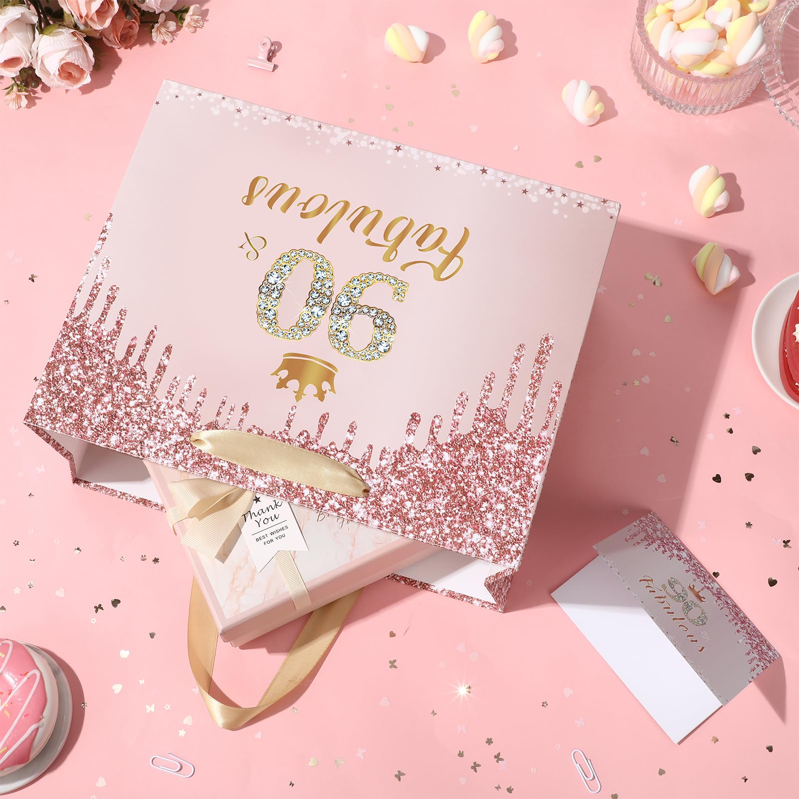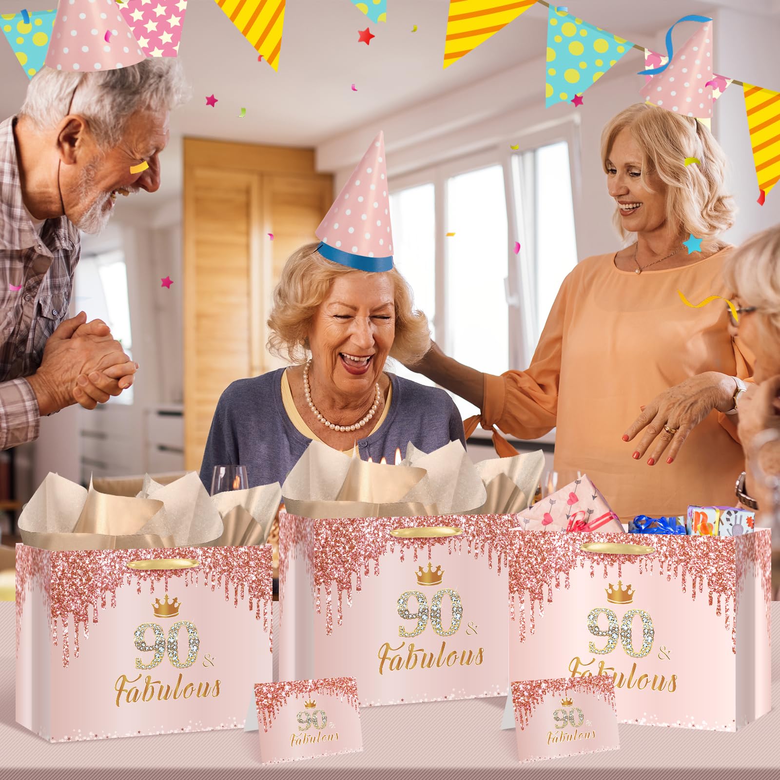 đăPackage ListăYou will get a large rose gold 90 & fabulous birthday gift bag for women, a 90 & fabulous birthday greeting card and 3 pieces of 90th birthday wrapping tissue paper.