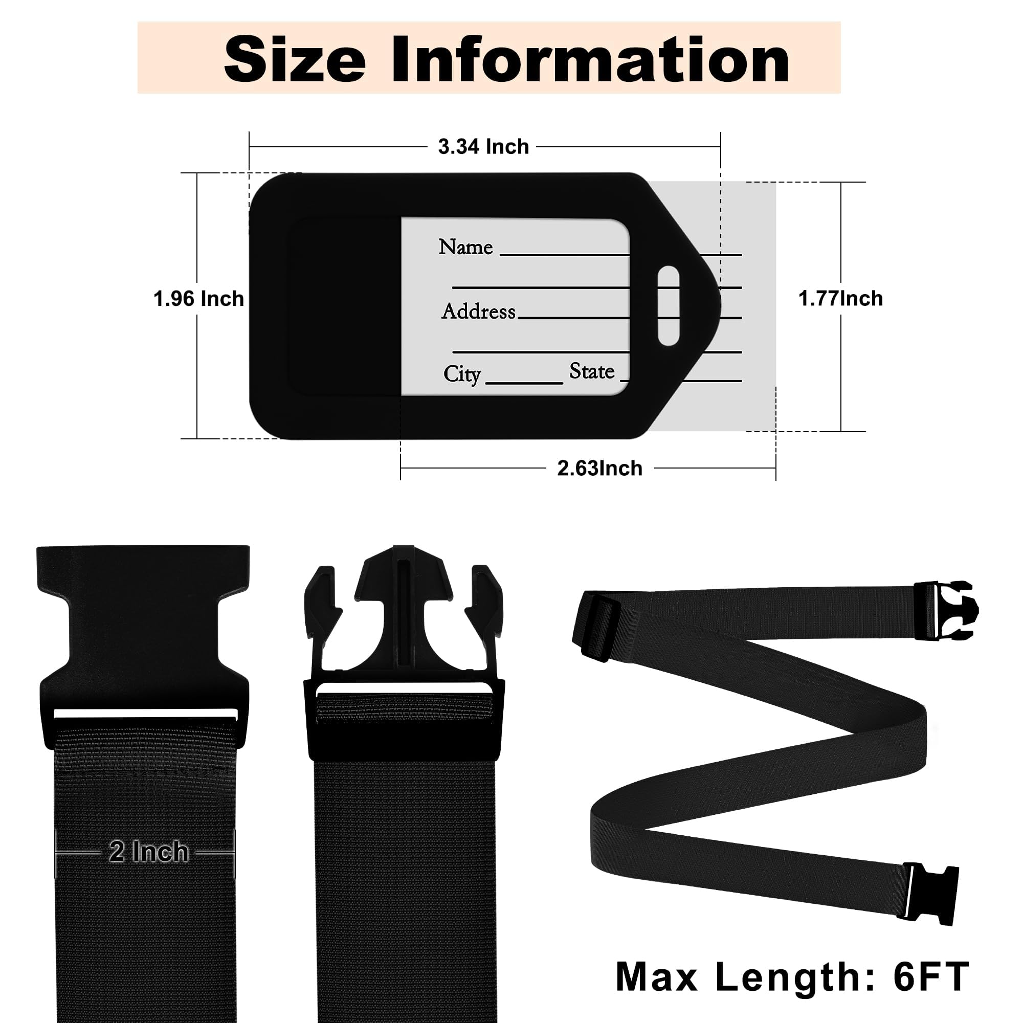 Adjustable Length: The 6ft long, 2" wide luggage belts feature an adjustable design to accommodate a variety of suitcase and bag sizes; Customize the length to ensure a secure, snug fit that prevents sliding or loosening of your luggage
