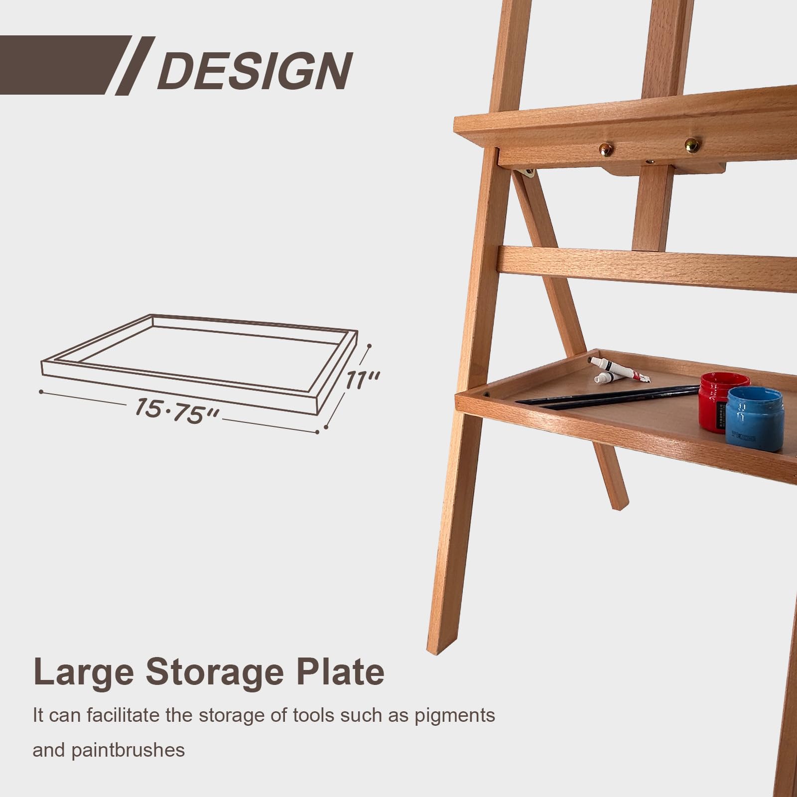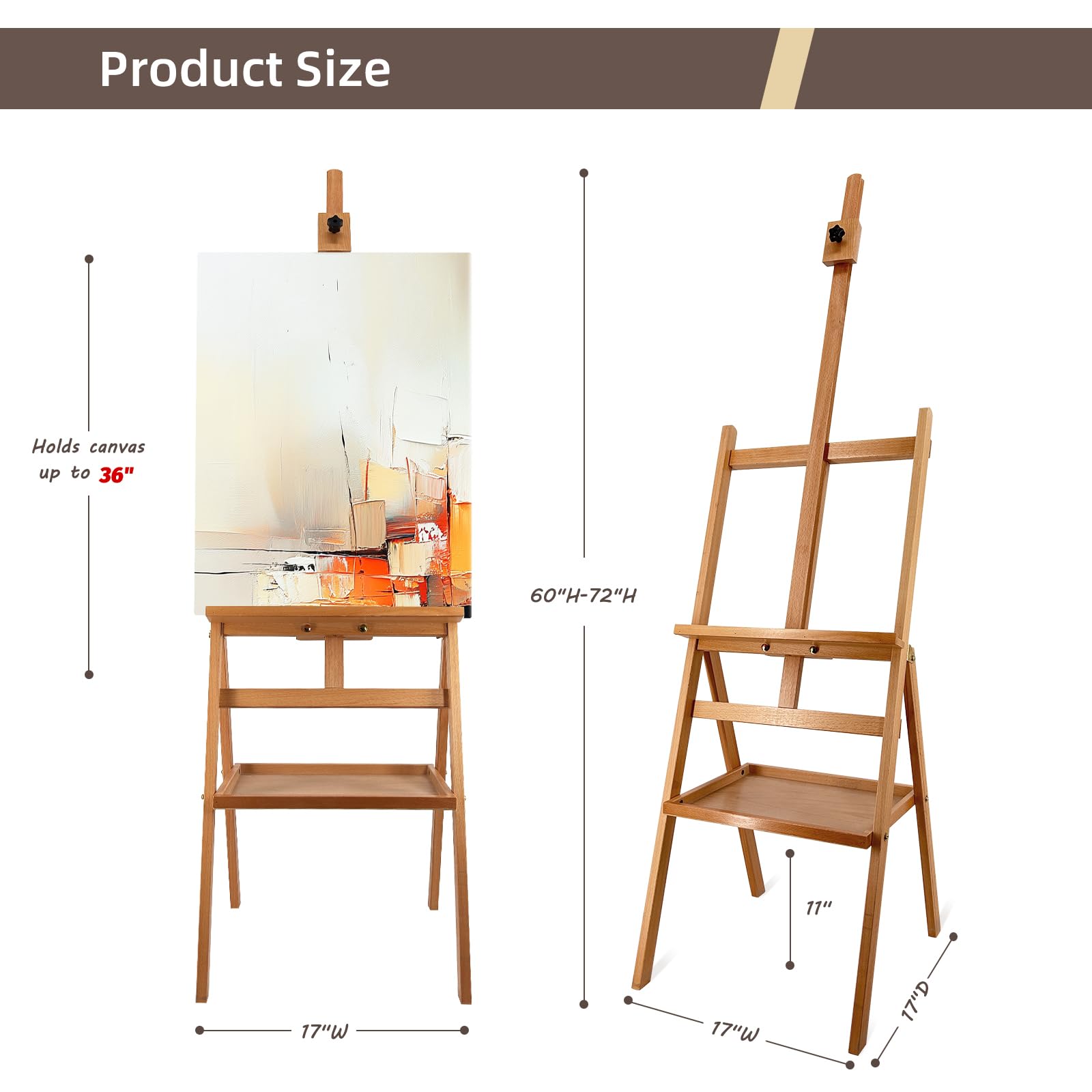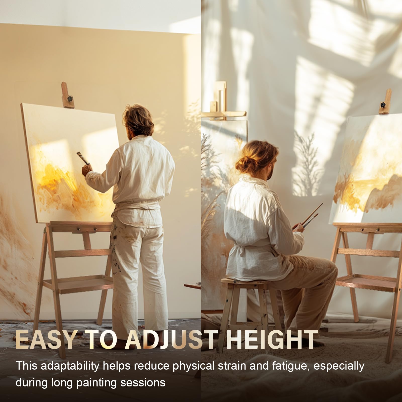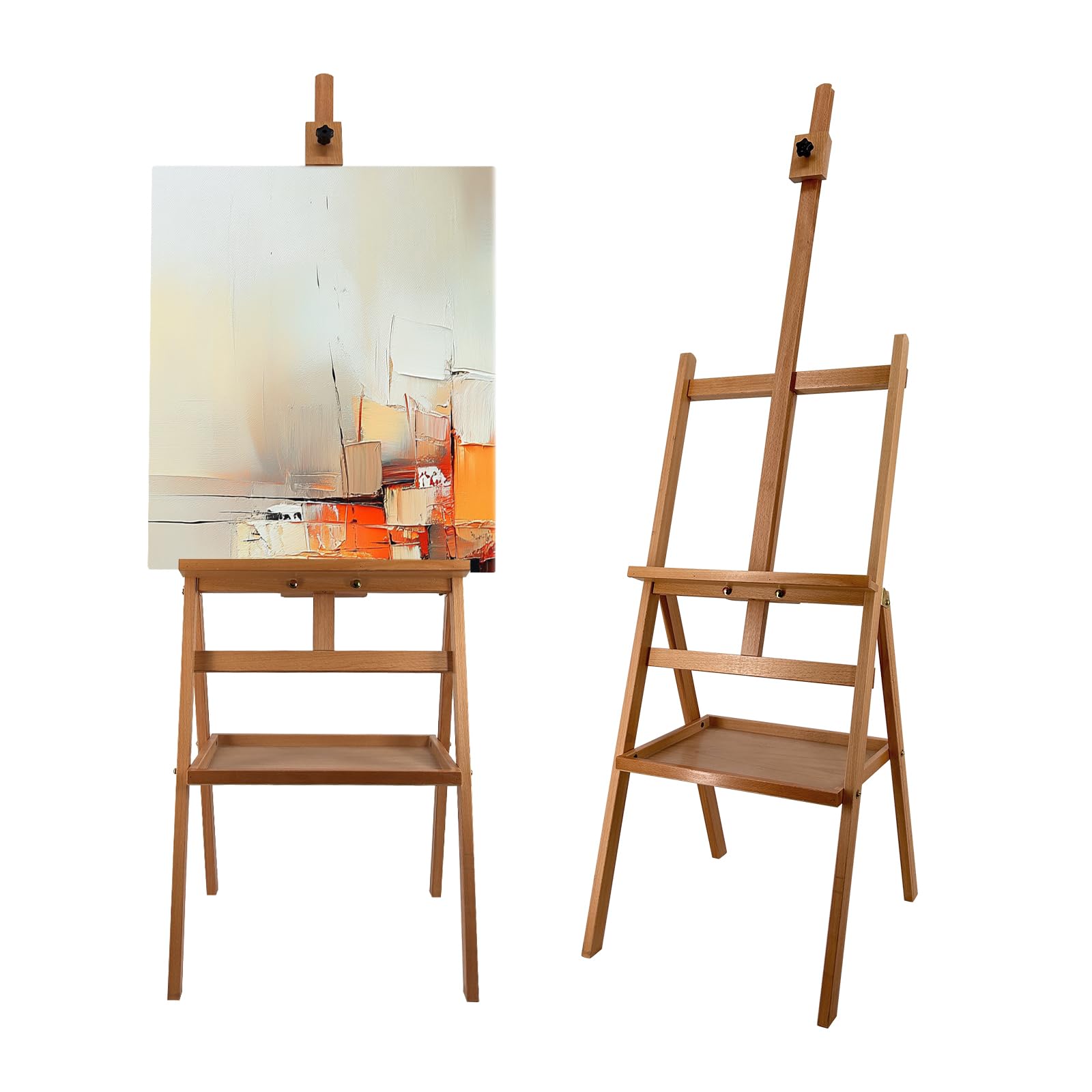Adjustable Positions: This easel offers flexible height adjustments, accommodating both sitting and standing positions. The height ranges from 58'' to 75'', making the easel suits for all kinds of professional works: acrylic, watercolor, or pastel painting.