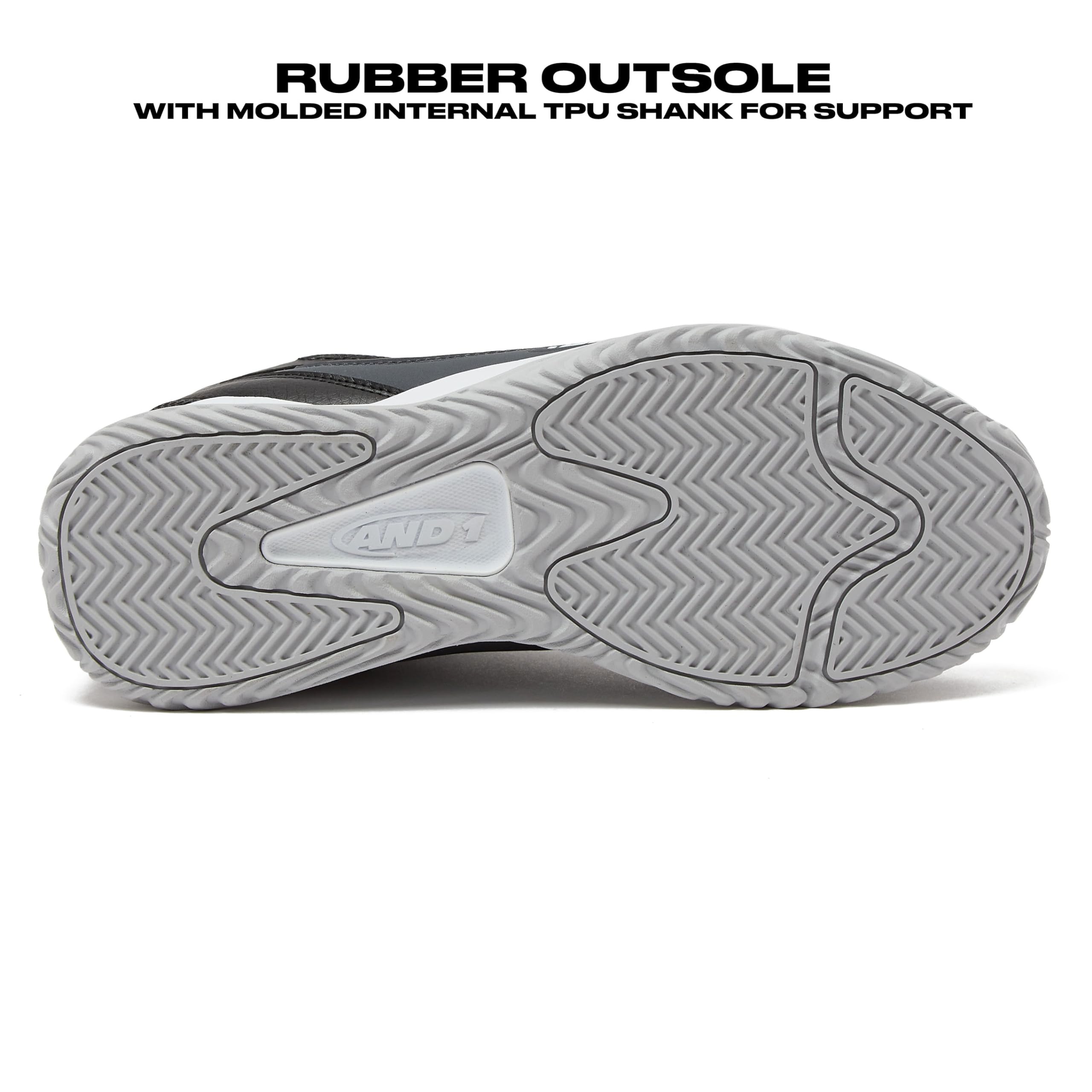 SUPERIOR TRACTION - The full-length rubber outsole with herringbone tread pattern maximizes skid resistance and grip on the indoor or outdoor court. The internal shank provides torsional support for the explosive lateral movement unique to basketball.