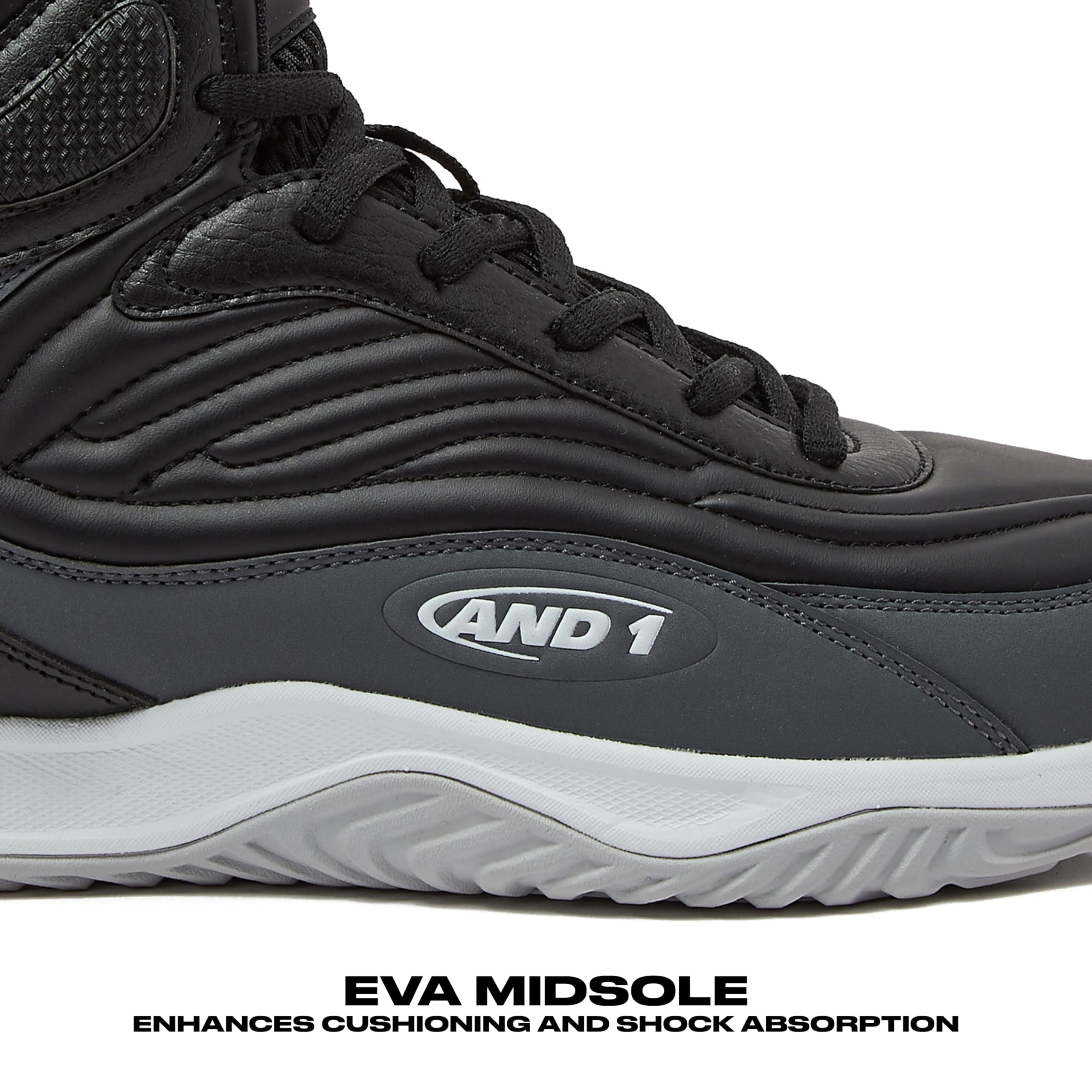 MENS BASKETBALL SHOES - The AND1 Pulse 3.0 high top sneakers for men deliver a sturdy fit, feel and lock-down. Hit the black top or the streets in this clean, no frills performance lifestyle hybrid.