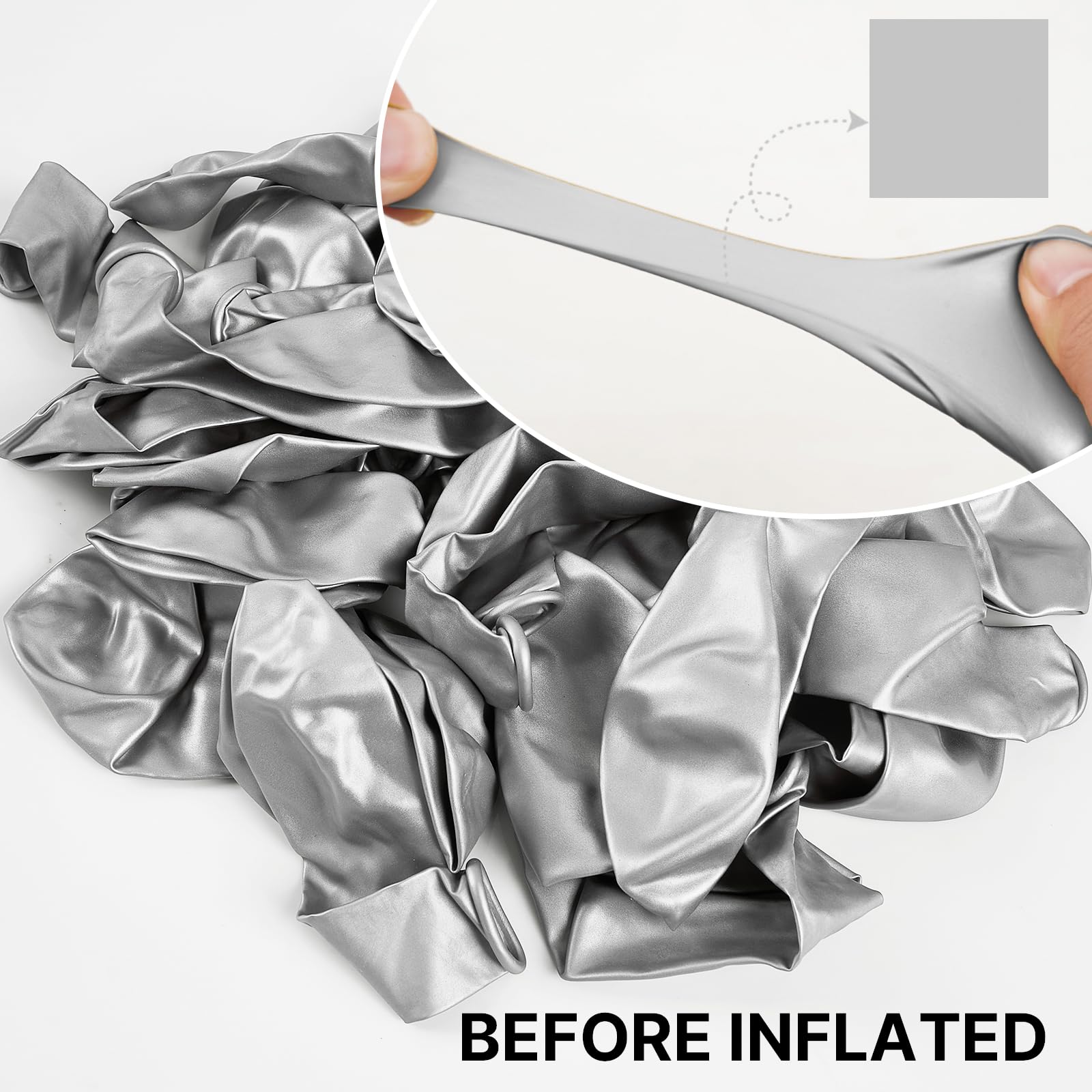 50 PCS SILVER METALLIC BALLOONS: The package comes with 12 inch silver metallic balloons (50 pcs), whose colors are super metallic, vibrant and bright. Ideal happy birthday decorations, wedding decorations, birthday decorations for women, birthday decorations, birthday decorations for men, birthday party supplies