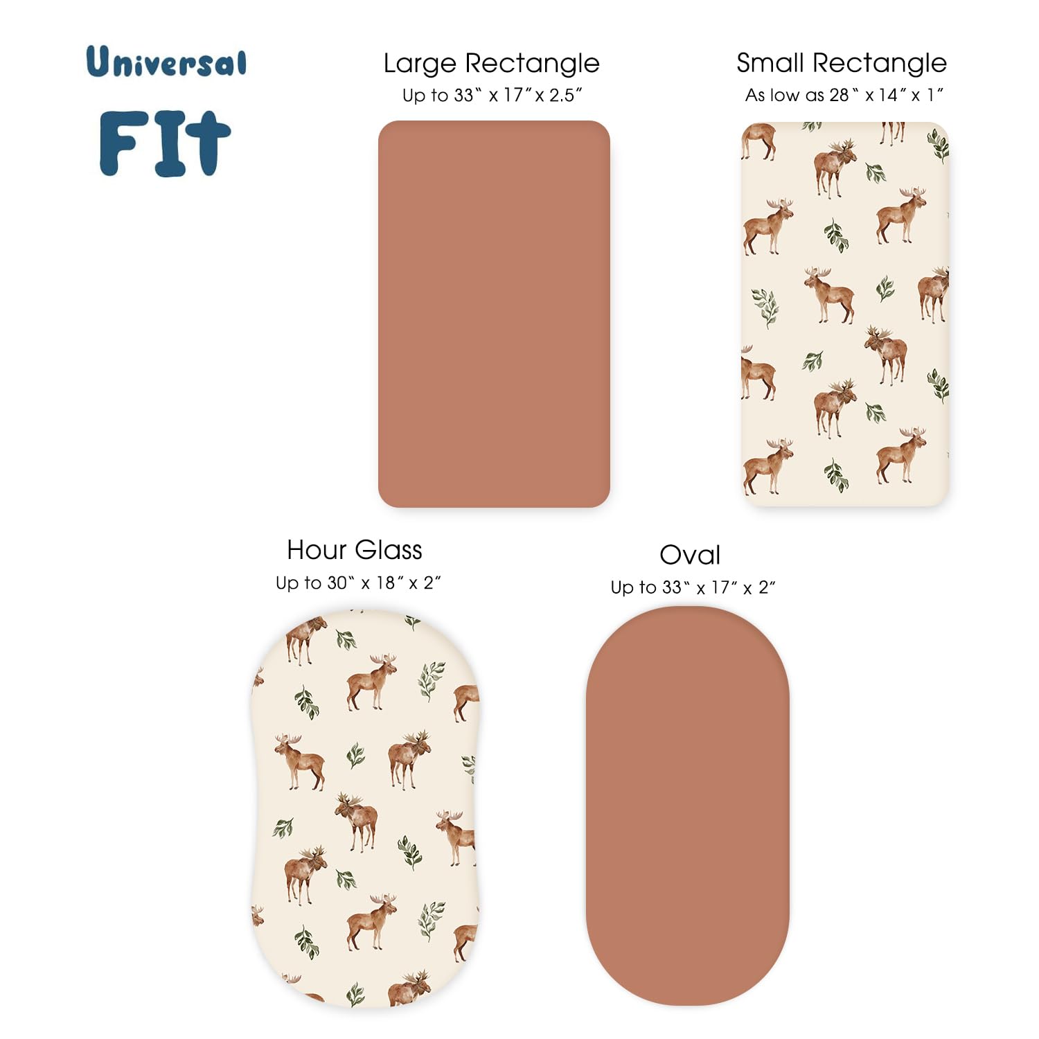 Universal Fit – Measuring 32" x 16" x 5". Our bassinet sheets fit almost all standard oval, round, rectangle, hourglass shaped bassinet mattress. Each bassinet mattress pad cover comes with an elastic band encased at the bottom for safety.