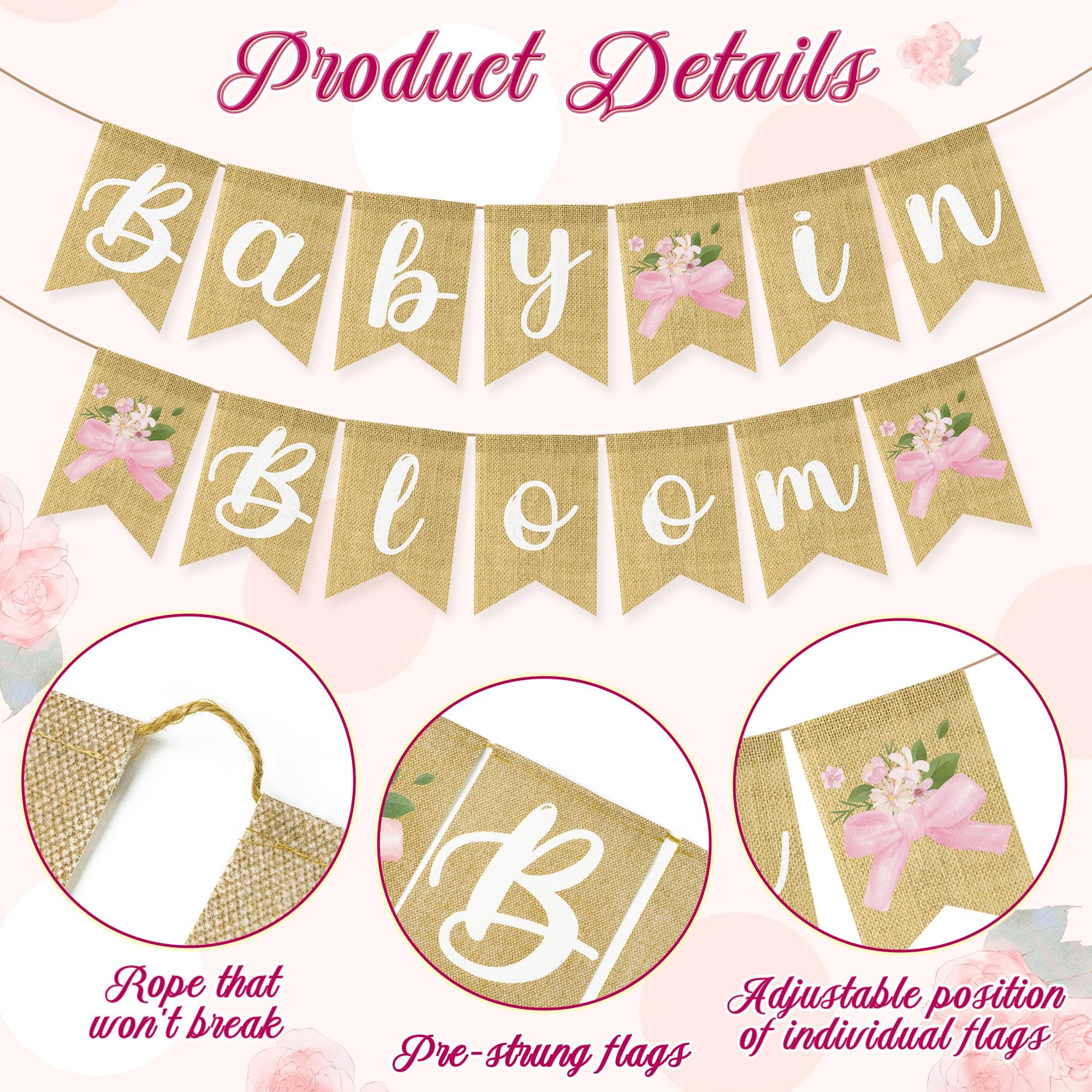Easy to Use: The coquette pink bow baby in bloom burlap banner comes pre-assembled, so you can save time and effortlessly decorate your venue. Each flag is securely attached to a jute rope, allowing for easy hanging and ensuring that the banner stays intact throughout the event.
