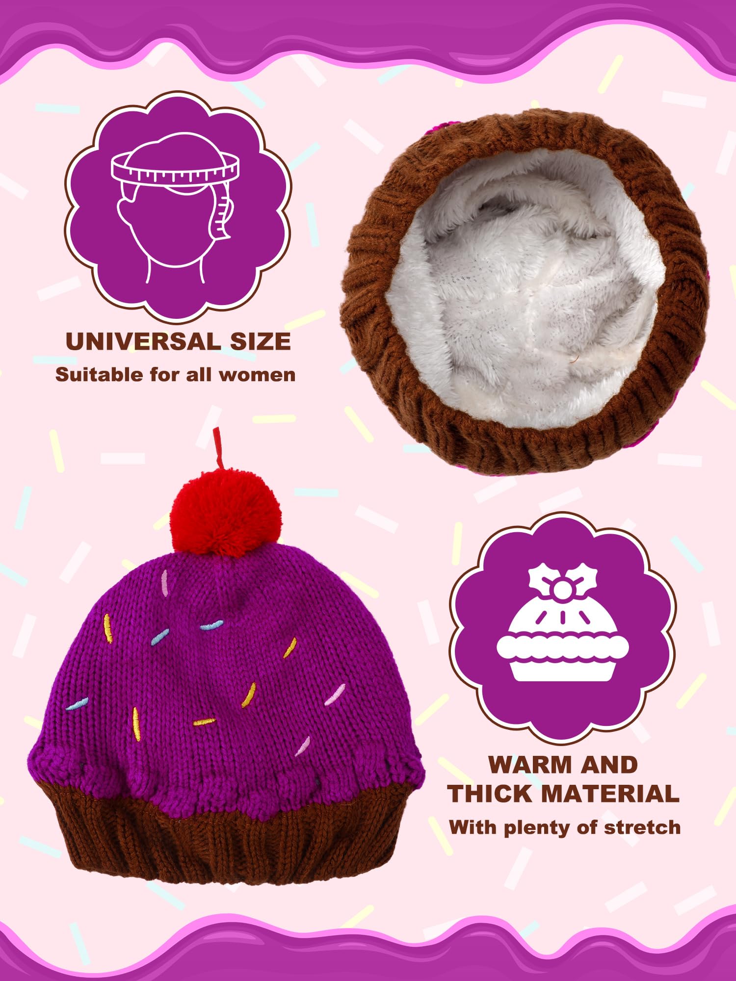 Ideal for Various Events: featuring a charming cupcake design with knitted lace, a cute pompom on the top, and colorful sugar grains, this Xmas cupcake beanie hat is a delightful hit for various situations; Be it skiing, hiking or parties