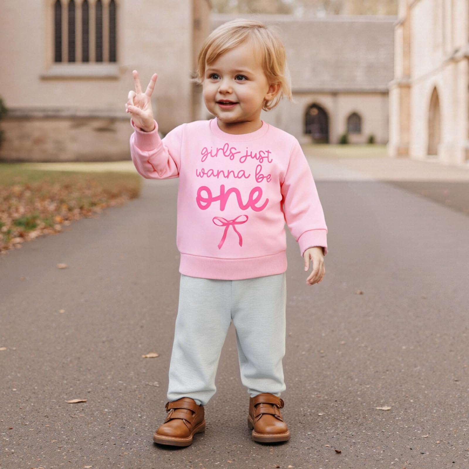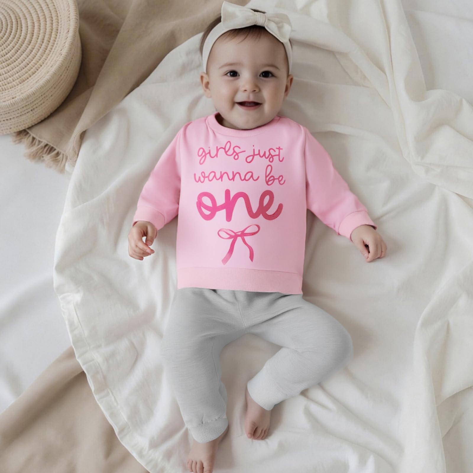 Design: Baby girl first birthday outfit, long sleeve, crewneck, in my one year old era print, 1st birthday sweatshirt, matching with elastic waist solid pants, very cute and trendy sweatsuit for spring,fall and winter, 1st birthday gifts girl, girls first birthday outfit