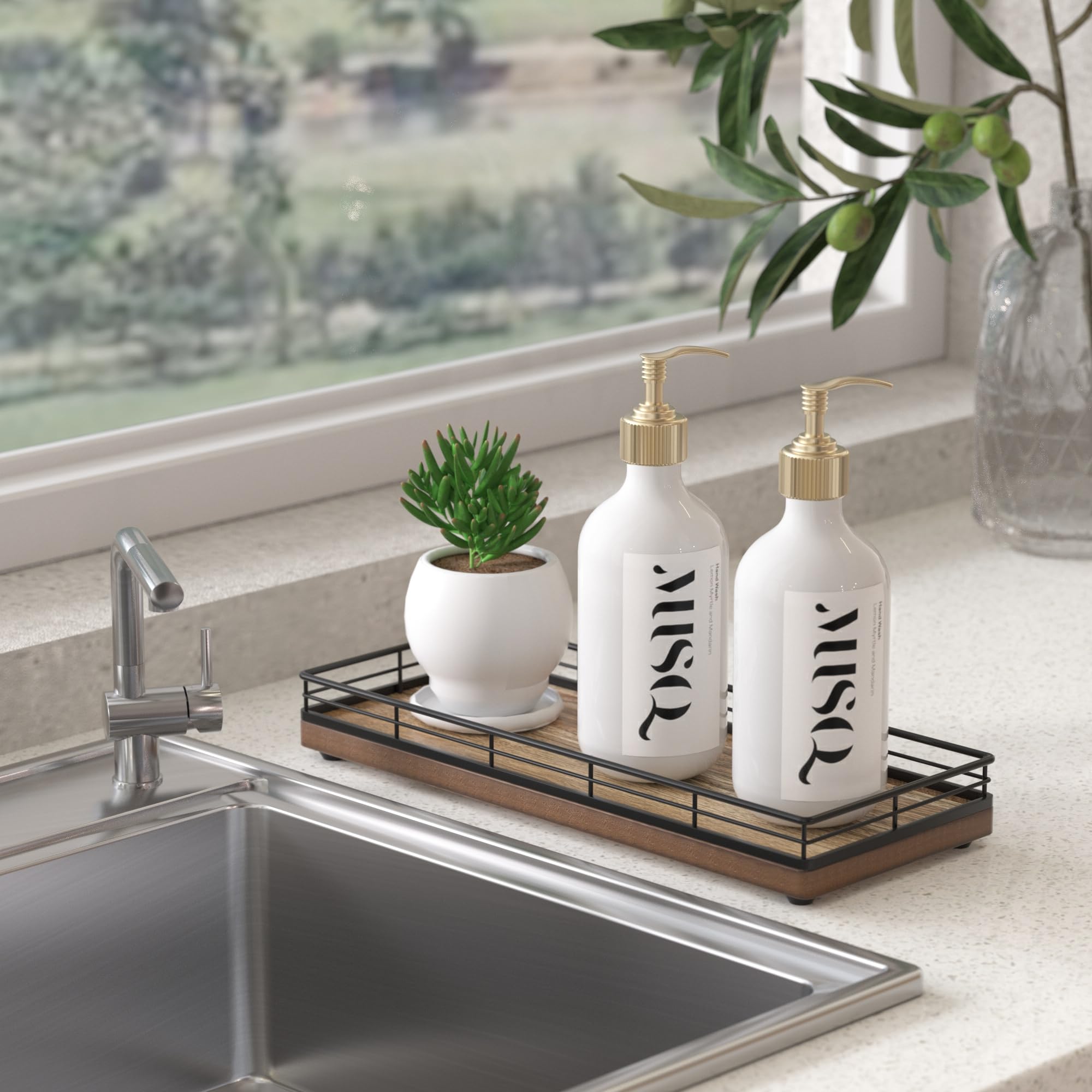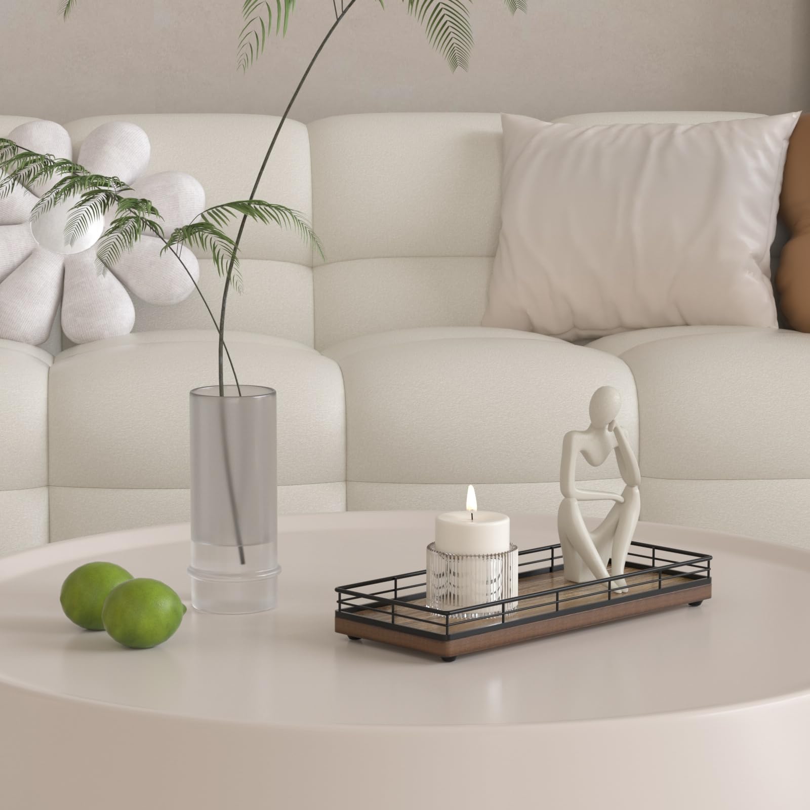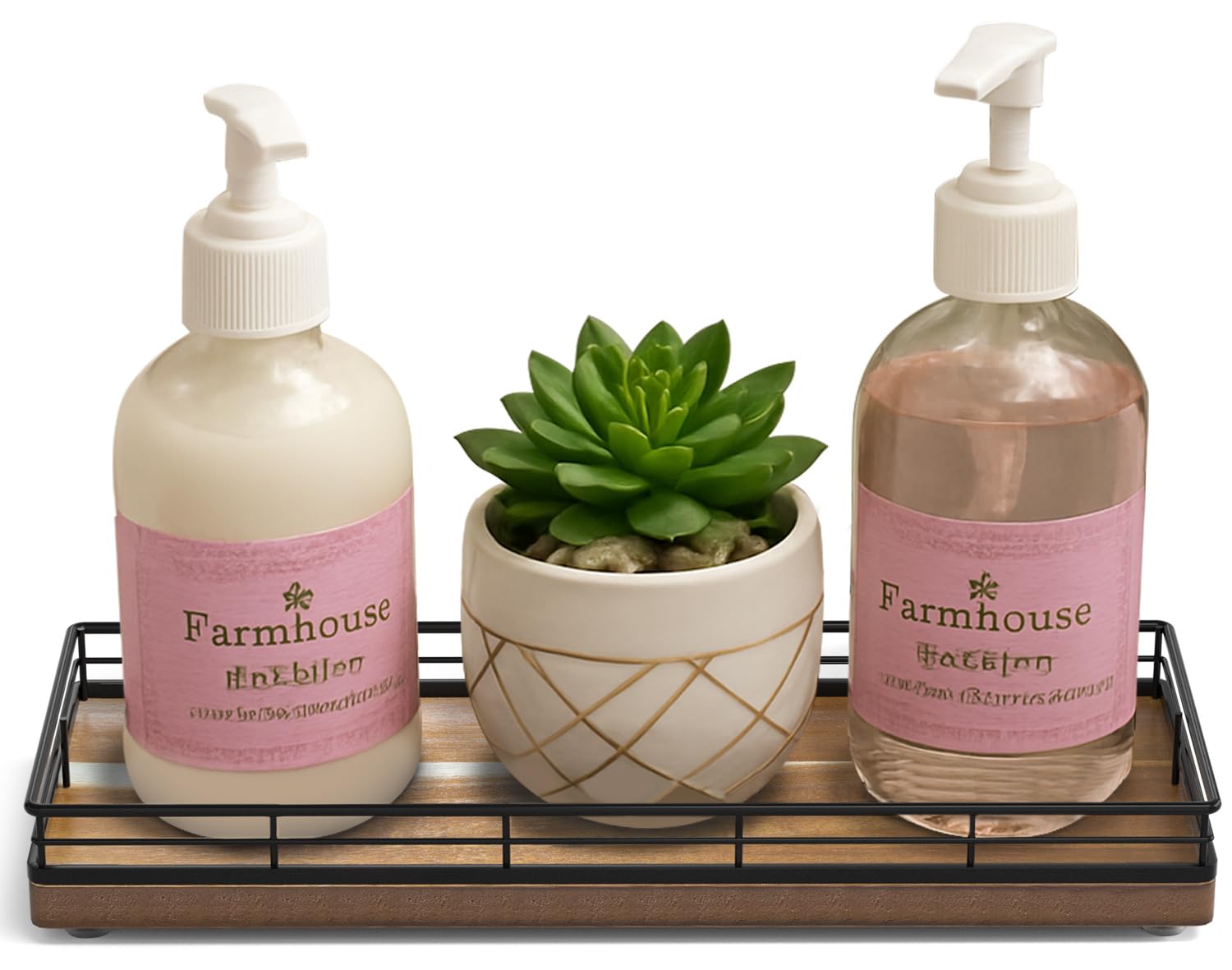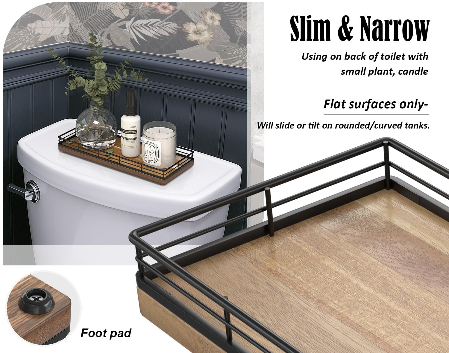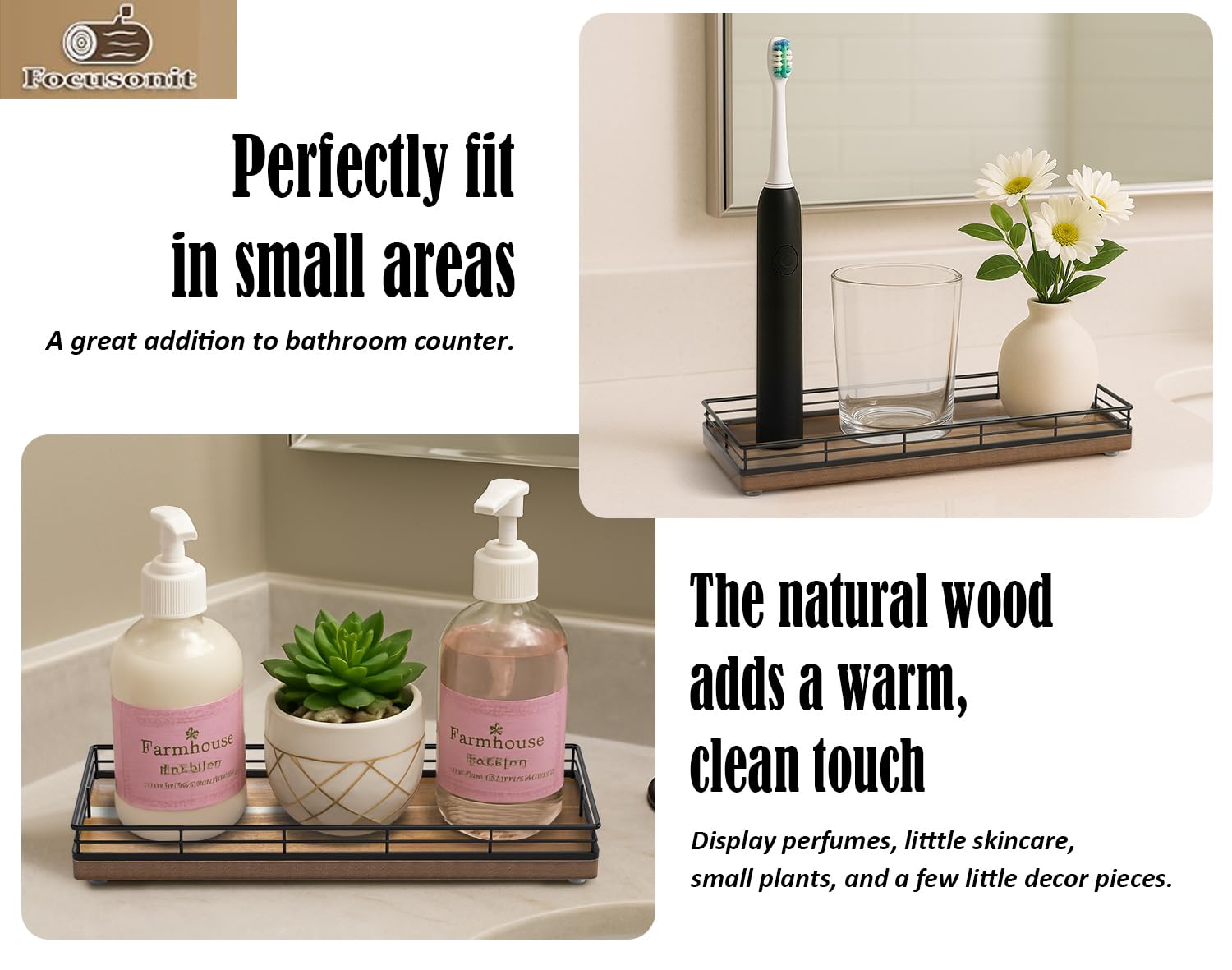 VERSATILE FUNCTIONALITY: Elevate your daily routine with our bathroom counter tray; Neatly arrange bathroom essentials like soap, toothbrushes, cotton swab and lotions, keeping your countertop tidy; Add a touch of elegance to your dresser by using the vanity tray to showcase perfumes, jewelry, and cosmetics; Impress your guests with neatly arranged hand towels and toiletries presented on the small tray or use it as a toilet tank tray