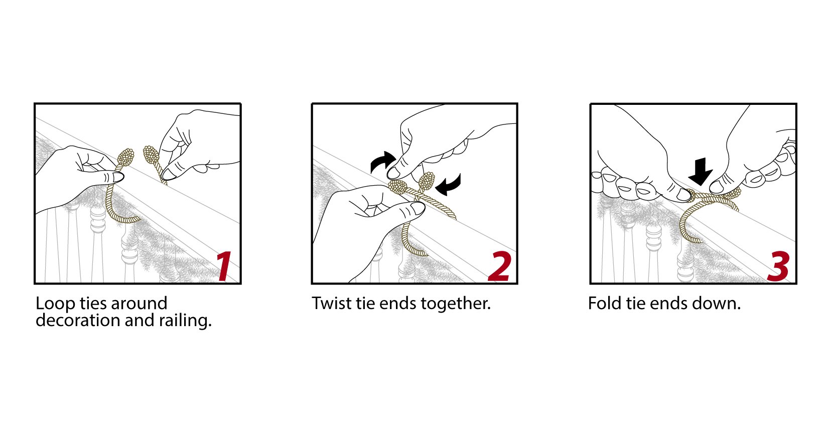 STYLISH-Decorative Twist Ties secure garland or other decorative items such as wreaths, lights and stockings to banisters and railings with ease.