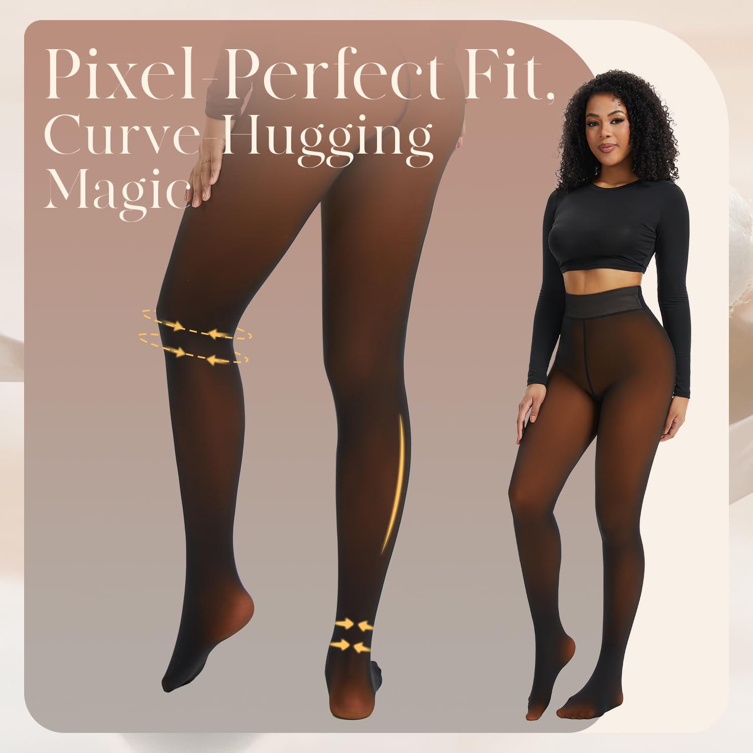 Pixel-Perfect Fit๏ผFleece lined tights women experience a uniquely close-to-skin fit that hugs your every curve flawlessly, thanks to our advanced Pixel-Perfect TrueSkin fabric.