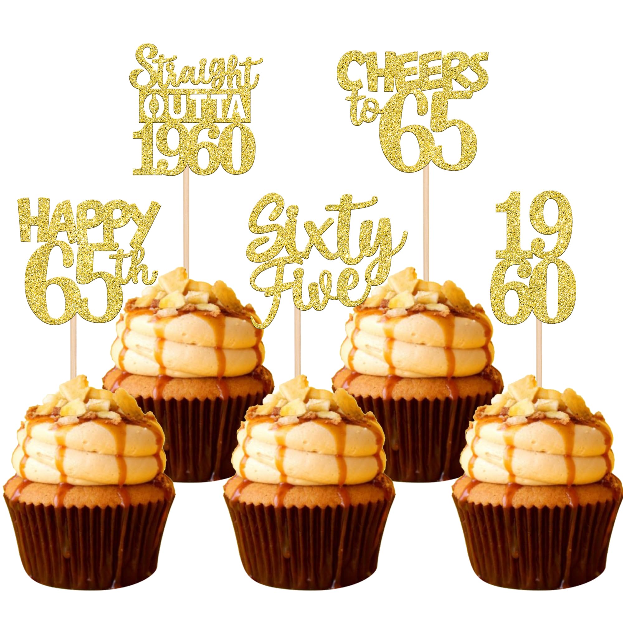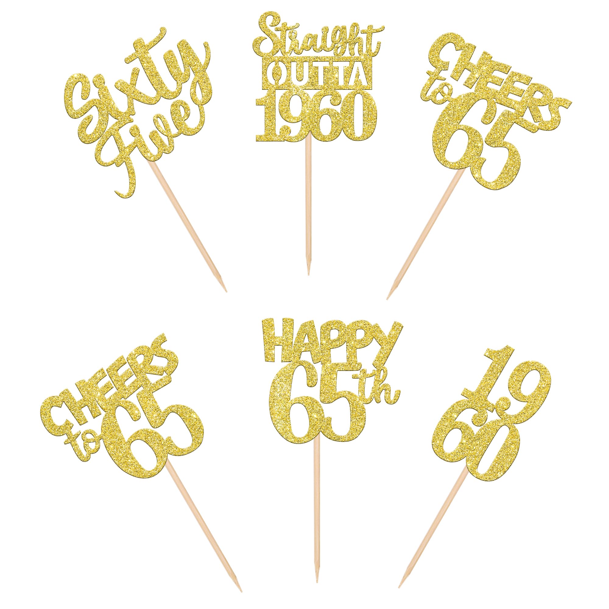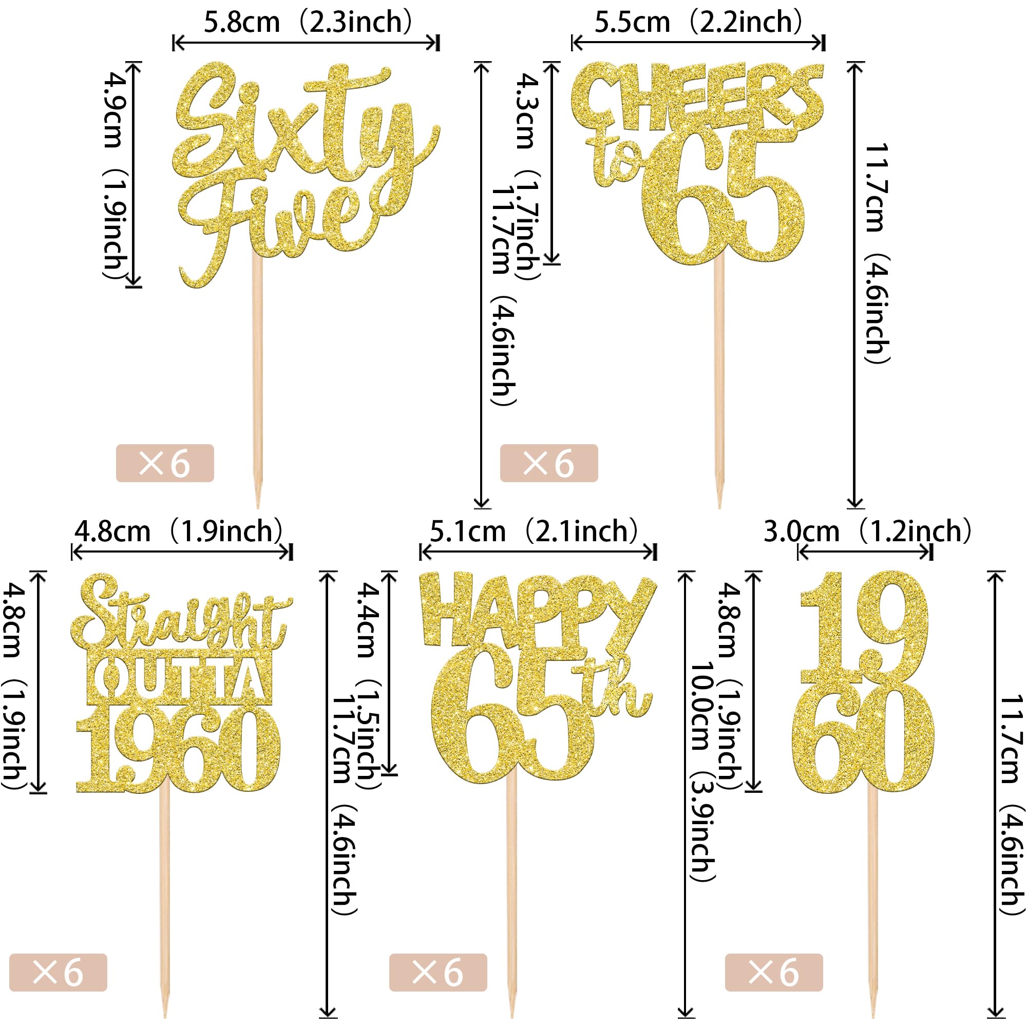 Straight Outta 1960 Cupcake Toppers for Happy 65th Birthday Anniversary Party Cake Decorations Supplies Perfect for happy 65th bithday theme party,straight outta 1960 theme party,65th wedding anniversary theme party,cheers to 65 years theme party cupcake decorations supplies. Pack of 30 pcs,6 pcs of each design The size is 2.3*4.6/ 2.2*4.6/ 1.9*4.6/ 2.1*3.9/ 1.2*4.6 inch ( with stick ) Made of high quality paper card stock,thick and thick and sturdy. These cupcake toppers are single glitter, the back is white, and they are intended for decoration only, please do not put them in oven or microwave. If the item you received has any defects, please contact us immediately.we will deal with it within 24 hours.
