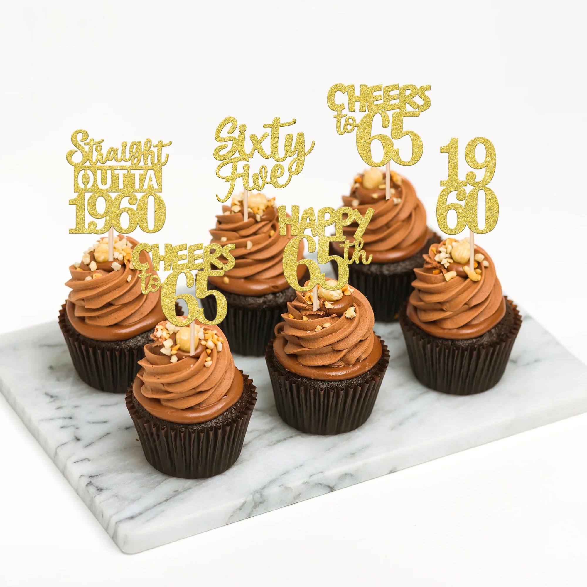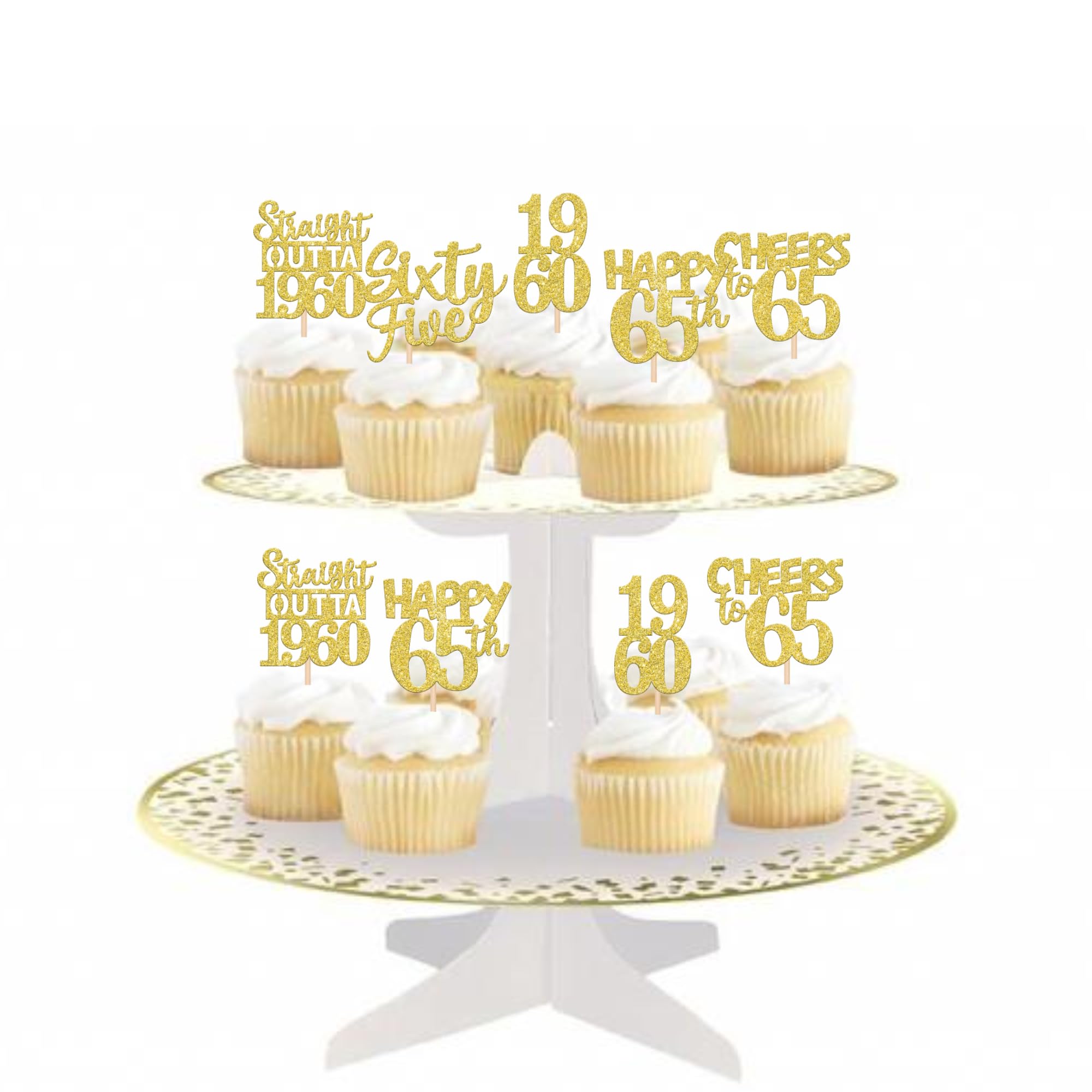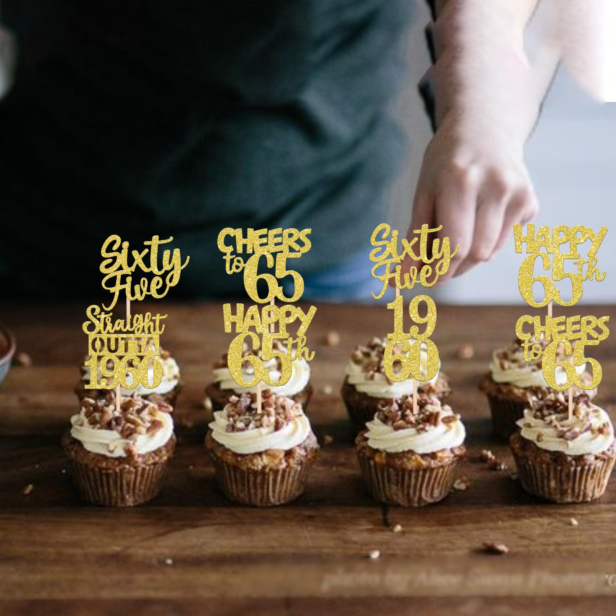 Straight Outta 1960 Cupcake Toppers for Happy 65th Birthday Anniversary Party Cake Decorations Supplies Perfect for happy 65th bithday theme party,straight outta 1960 theme party,65th wedding anniversary theme party,cheers to 65 years theme party cupcake decorations supplies. Pack of 30 pcs,6 pcs of each design The size is 2.3*4.6/ 2.2*4.6/ 1.9*4.6/ 2.1*3.9/ 1.2*4.6 inch ( with stick ) Made of high quality paper card stock,thick and thick and sturdy. These cupcake toppers are single glitter, the back is white, and they are intended for decoration only, please do not put them in oven or microwave. If the item you received has any defects, please contact us immediately.we will deal with it within 24 hours.