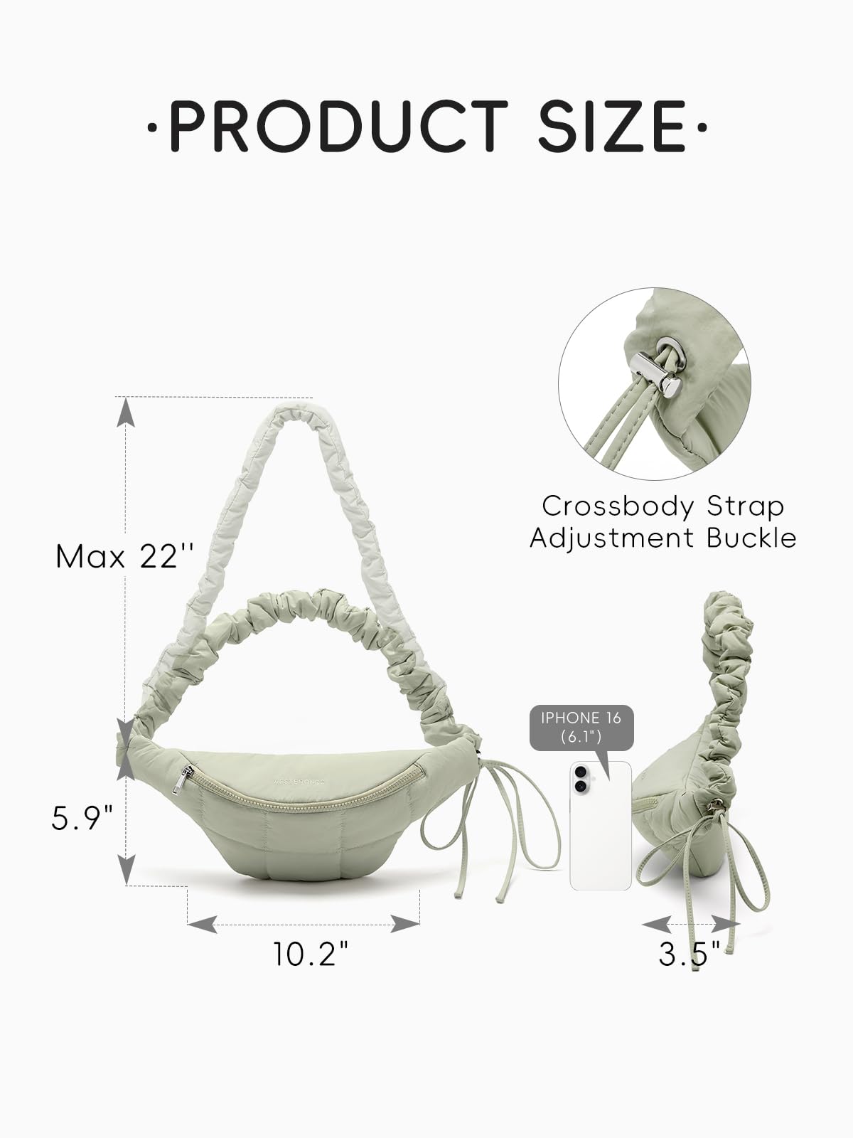 Lightweight & Adjustable Comfort: Designed for all-day ease, this puffer belt bag offers a soft yet structured feel. Its adjustable drawstring strap allows custom fittingβwear it as a crossbody bag or a classic fanny pack while enjoying hassle-free comfort and modern flair.