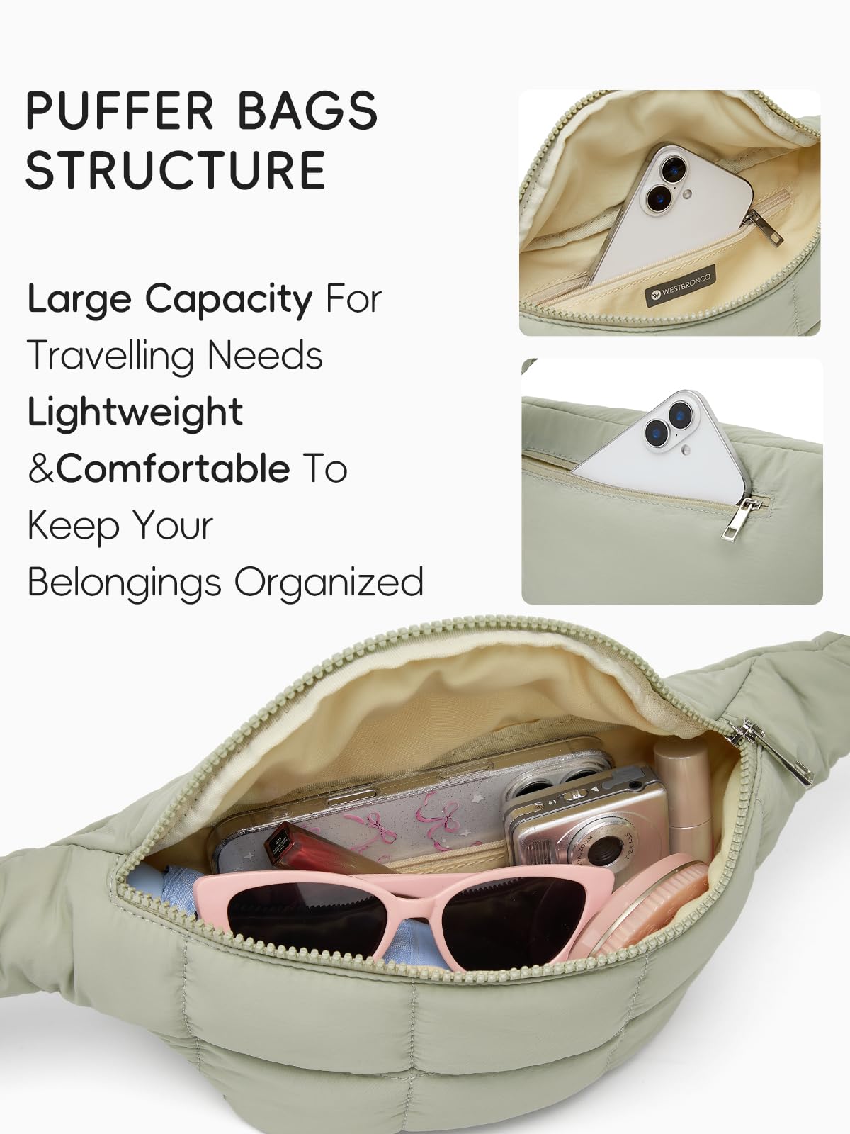 Stylish & Versatile Wear: Versatile for Any Occasion: "A puffer bag can effortlessly complement various outfits," says Brenda Iris, image consultant, stylist. This travel sling bag features contemporary stitching and a fashion-forward puffed design, making it a chic crossbody belt bag ideal for errands, travel, or casual outings.