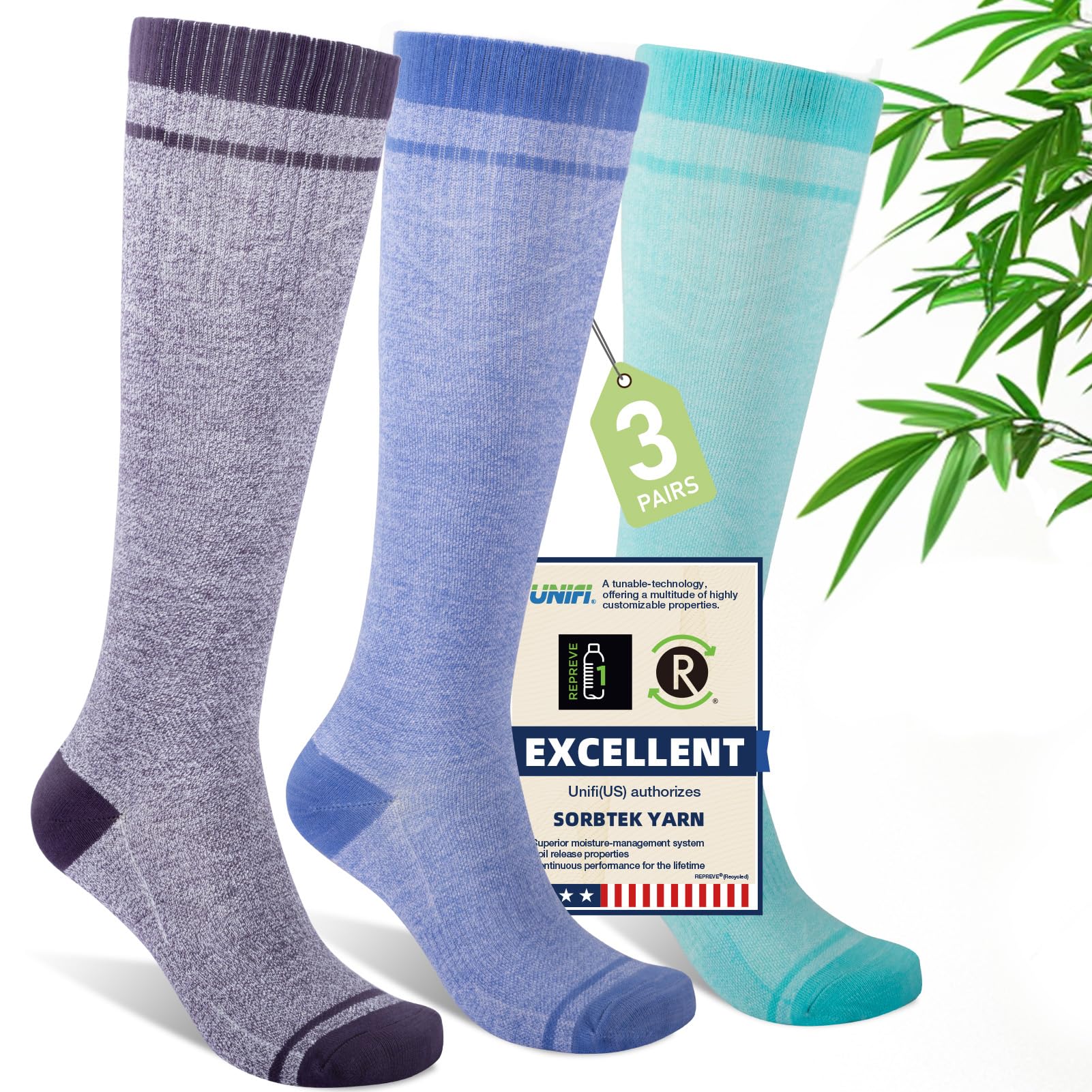 Ultra-Premium Blend:Made with 80% renewable bamboo viscose, advanced US Sorbtek yarn, and Lycra spandex, these compression socks enhance moisture-wicking by 60% while delivering superior breathability, odor resistance, and ultra-soft comfort. The lightweight graduated compression promotes circulation without restricting movement, offering easy-care durability for all-day wear—ideal for sensitive skin and extended seasonal use.