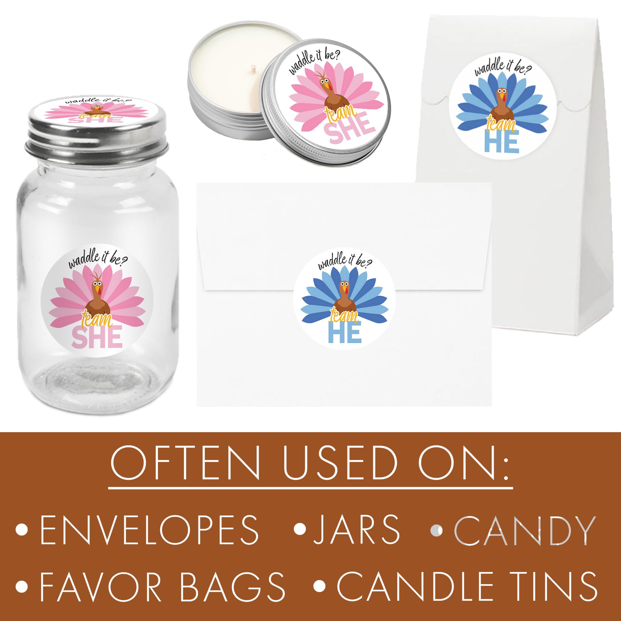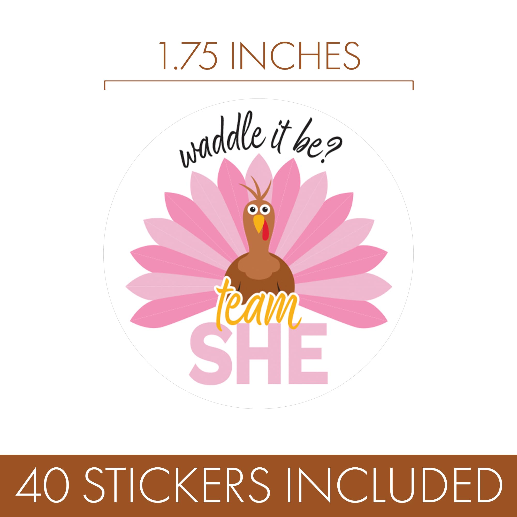 40 Count: Make your holiday gender reveal party exciting with our pink and blue turkey stickers. With 40 1.75" labels guests can vote for Team Boy or Team Girl.