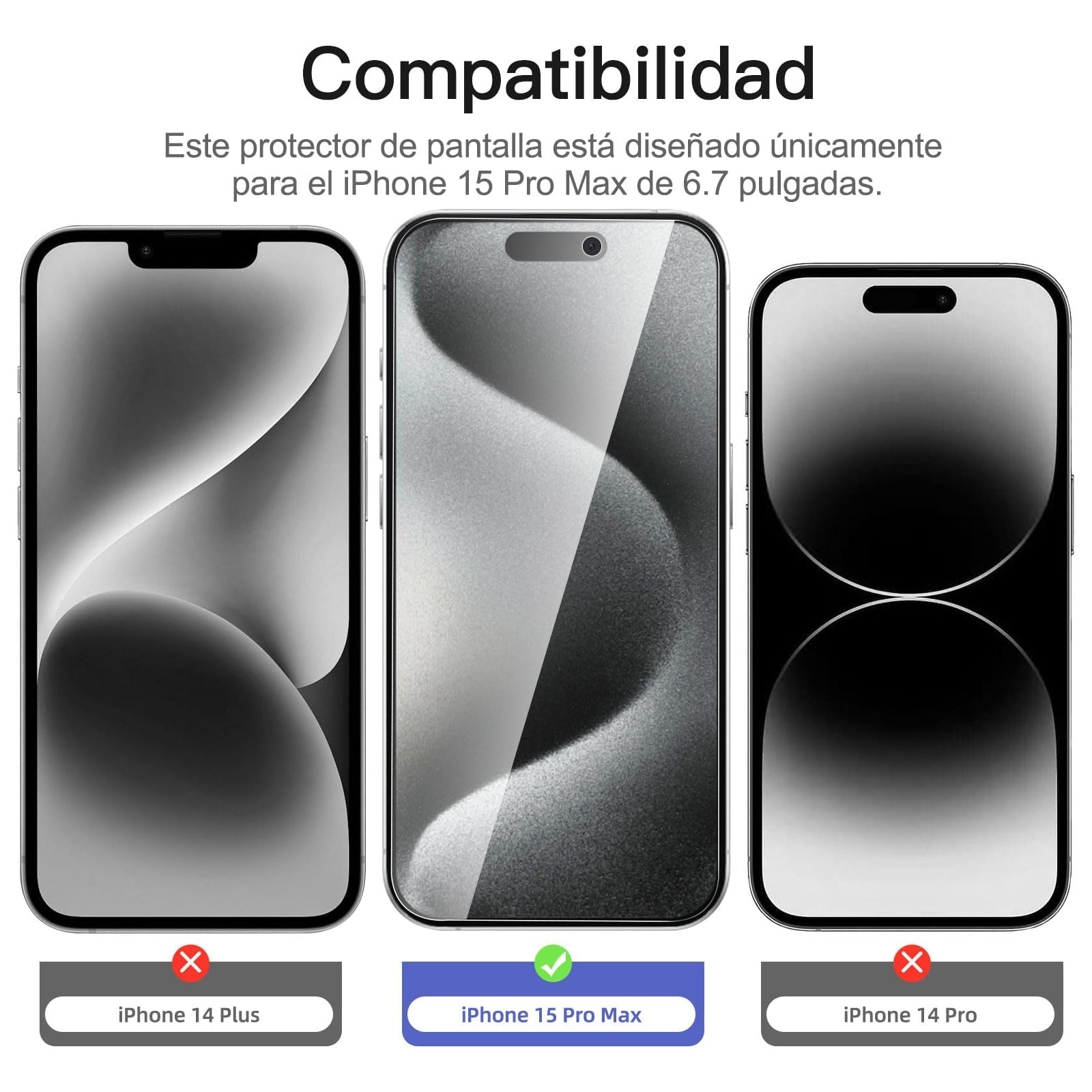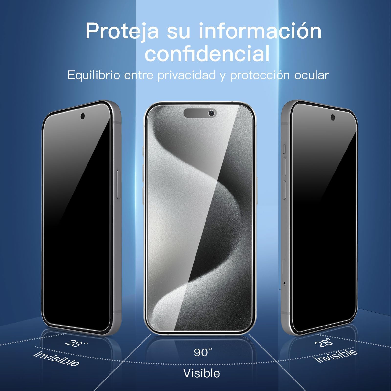 Content: 3 Tempered Glass Privacy Screen Protectors for iPhone 15 Pro Max (6.7 inches) and an easy installation tool. The privacy screen protector can protect the confidentiality of the data on the screen. It reduces the viewing angle to prevent prying eyes, keeping confidential information out of sight from third parties.