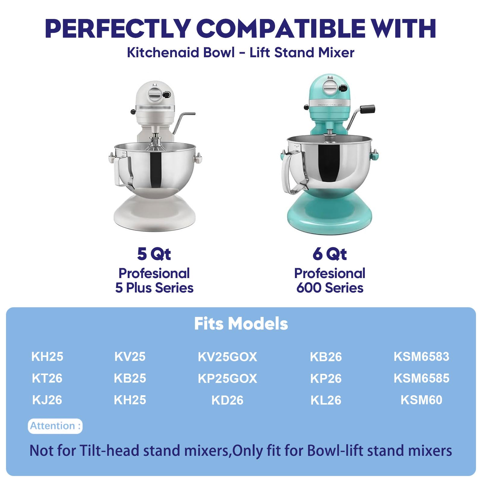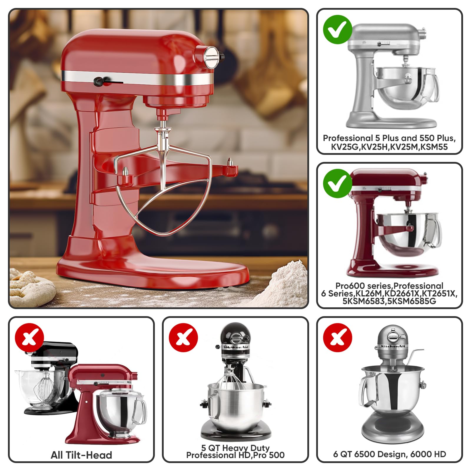 Capacity Adaptation: This paddle attachment for KitchenAid mixers fits 5 Plus and 6-quart KitchenAid Bowl-Lift Stand Mixers, as well as the Professional 6 Series and 600 Series. If you’re unsure about compatibility with your model, refer to the product fit chart