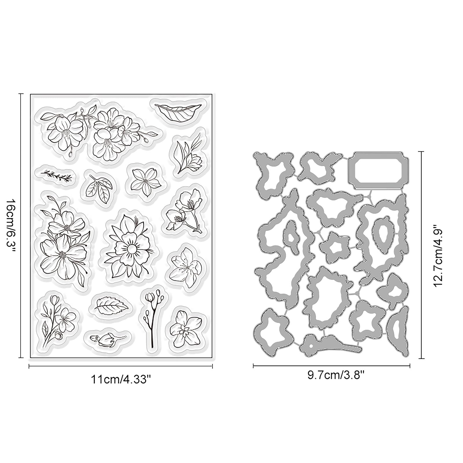 Package Includes: You will receive 1 sheet clear stamps (6.3x4.33inch) and die set including different species flower and leaf to make handmade greeting cards, birthday cards, spring cards and so on.
