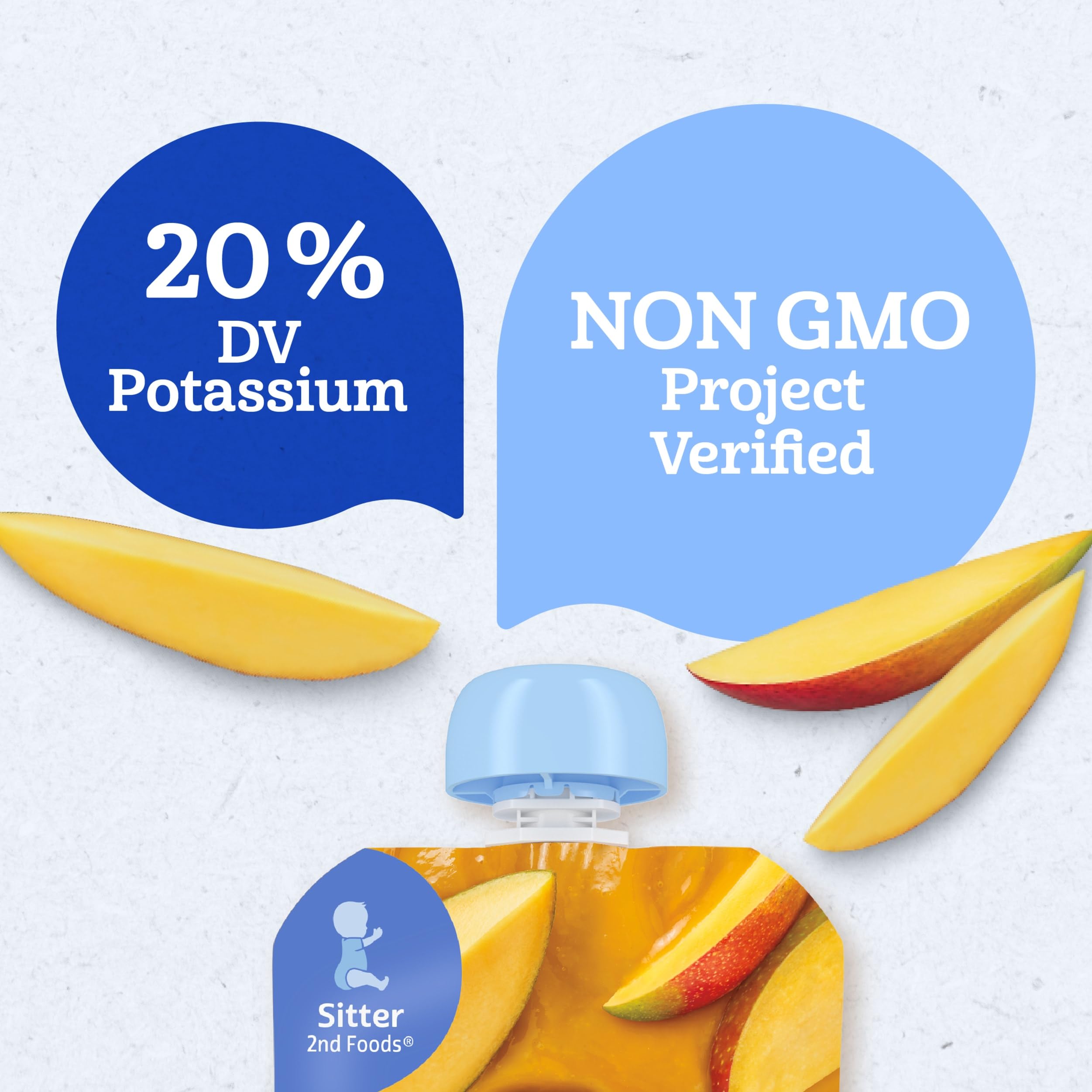 Our Gerber Mango Puree Pouch is crafted with wholesome ingredients, making it a premium choice for your little one. This fruit pouch contains 20% of the daily value of potassium and two servings of fruit*. These stage 2 Gerber baby food pouches are designed for babies who are ready to explore new textures and flavors, making them a great addition to your baby's diet. Gerber baby food understands the importance of providing wholesome food as your baby grows and develops. This Gerber baby food fruit pouch is ideal for parents who seek quality in their baby's diet. *1 fruit serving is 3 tbsp for babies.