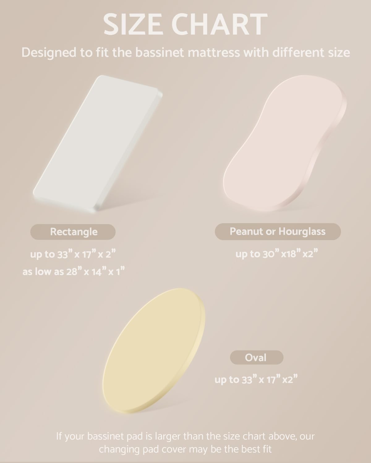 Snug and Secure Fit: Measuring 32 ''x 17 '', the bassinet sheet fits most oval, hourglass and rectangle mattresses for a sung fit. Plus, with an elastic band to keep the bed sheet in place, the bassinet sheet is secure and safe for babies to play