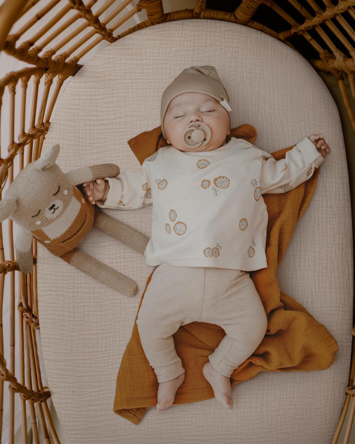 Premiun Muslin Cotton: Made from muslin cotton, our bassinet sheets are cozy and breathable in all seasons, making babies a better sleep. Plus, the soft muslin material is friendly for your baby's delicate skin