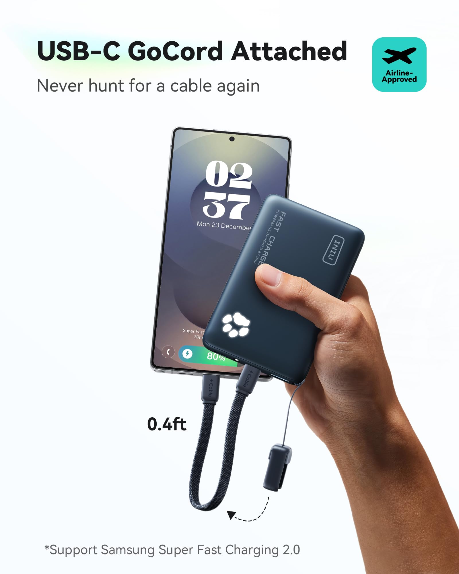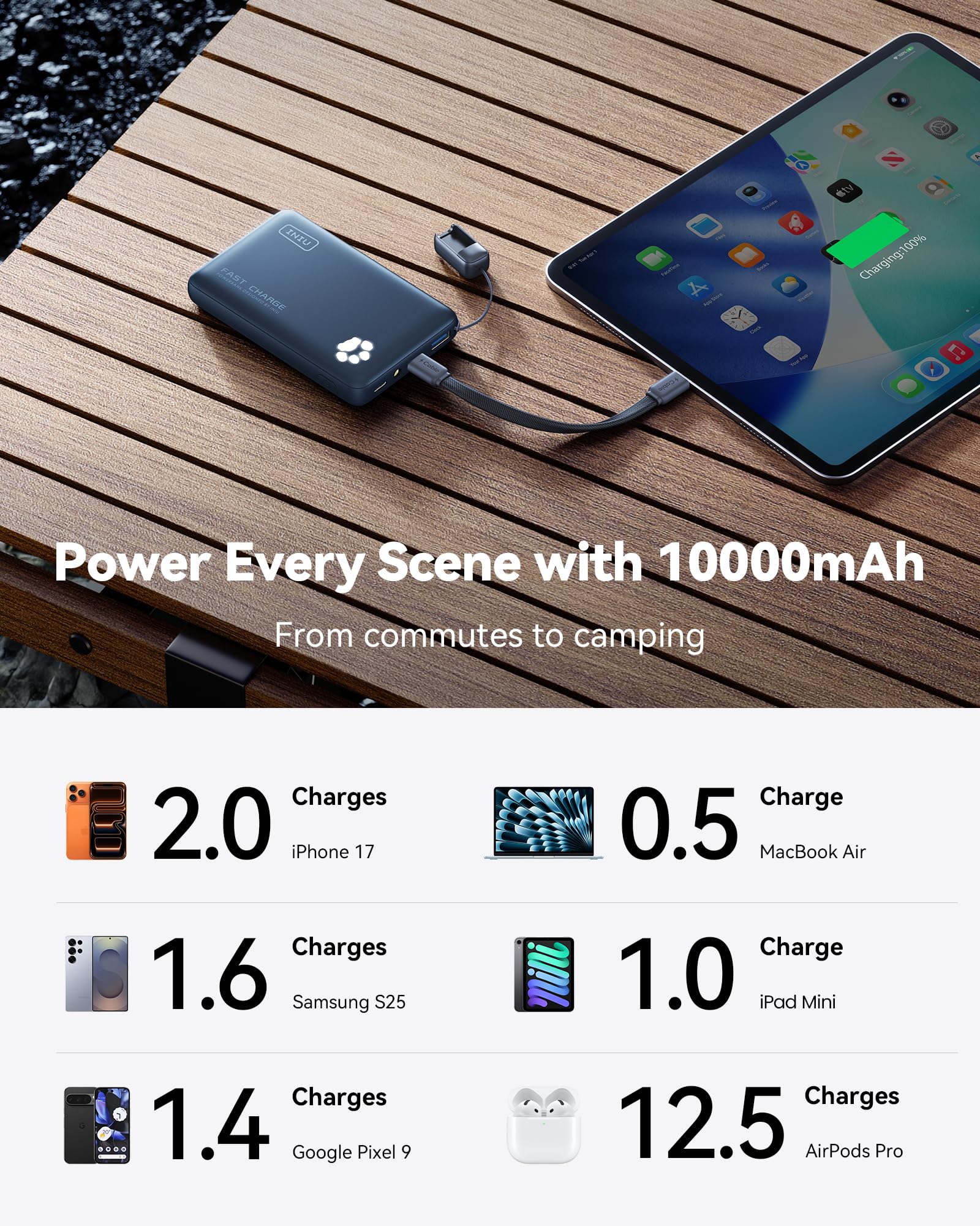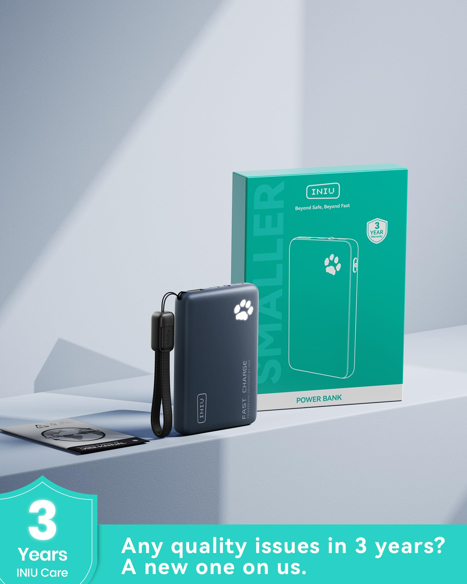 What You Get: INIU 10000mAh portable charger*1, 0.12M/0.4ft Lanyard USB-C to USB-C Cable*1, user manual*1, and Industry-Leading 3-Year INIU Care, plus Lifetime Technical Support.