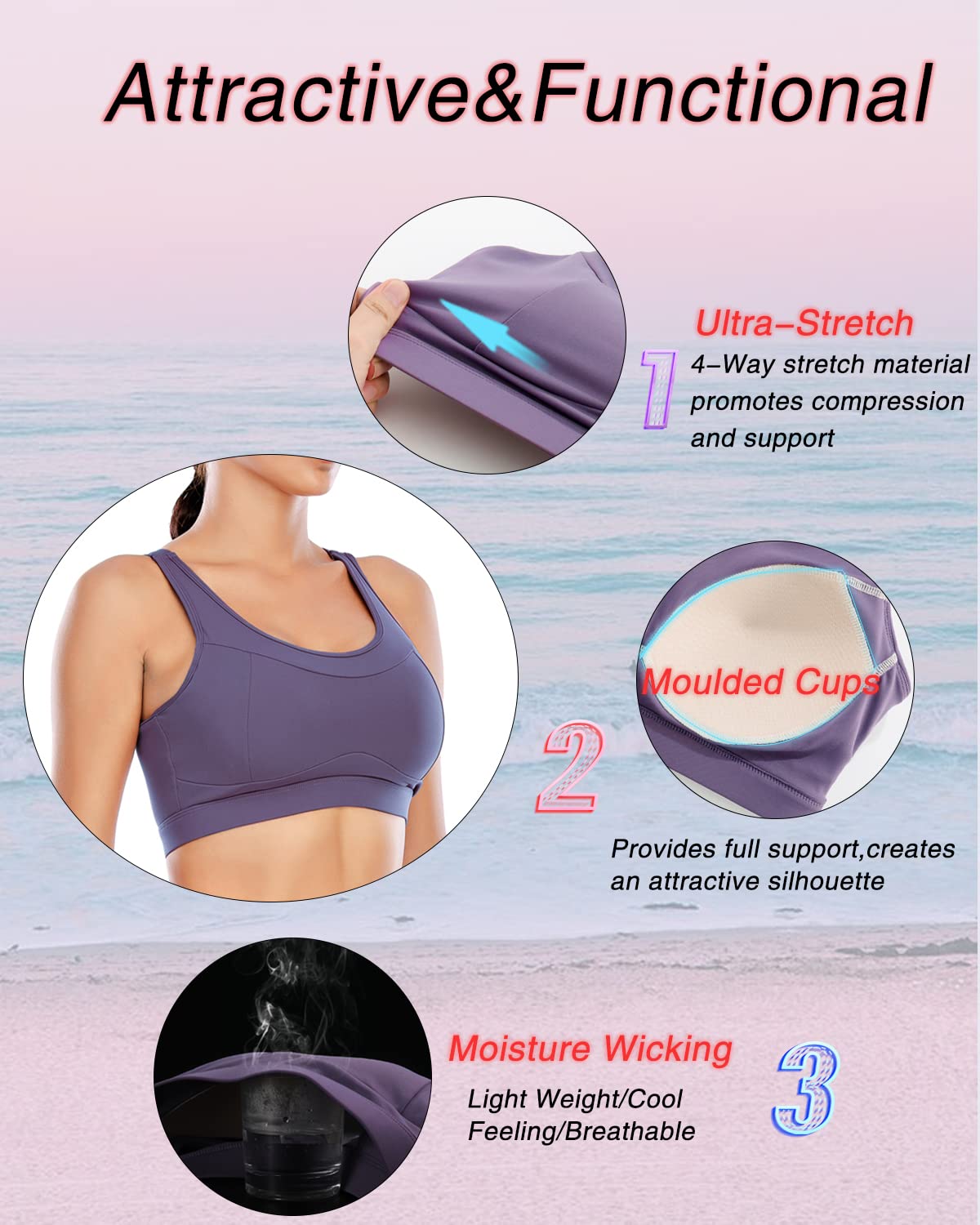 ✅ 【STREAMLINED TO FIT THE BODY】: These flat cup lining seams around the breast is the most proud part among all designs of this workout tops, according to our famous fashion designers in New York. It creates a special chest area in the front of our yoga bras. It perfectly highlight your beautiful cup lines and boob shape while offers a great full coverage and support.