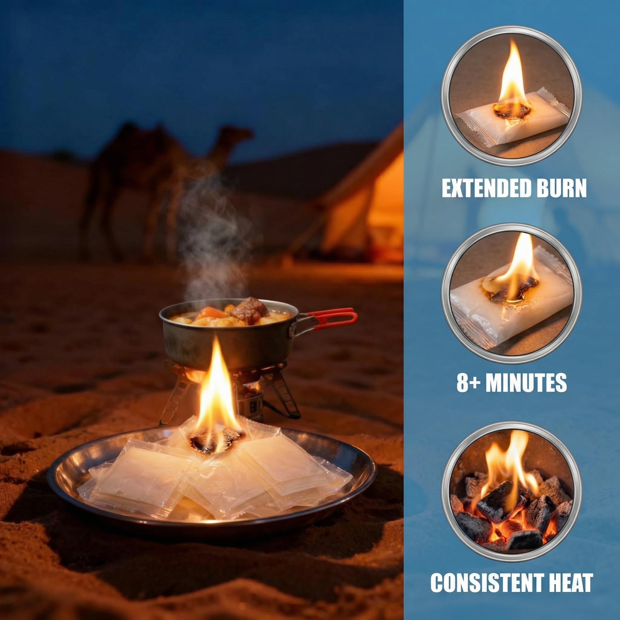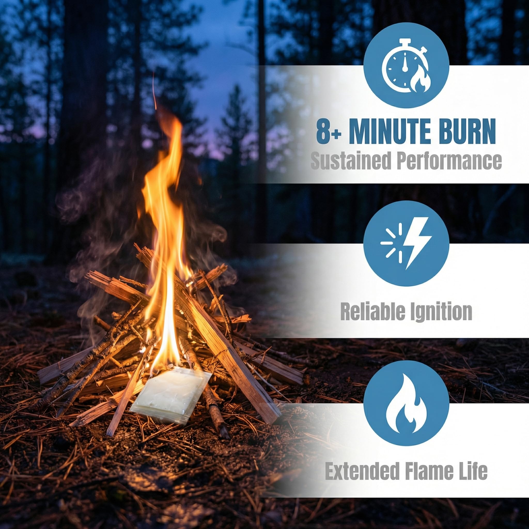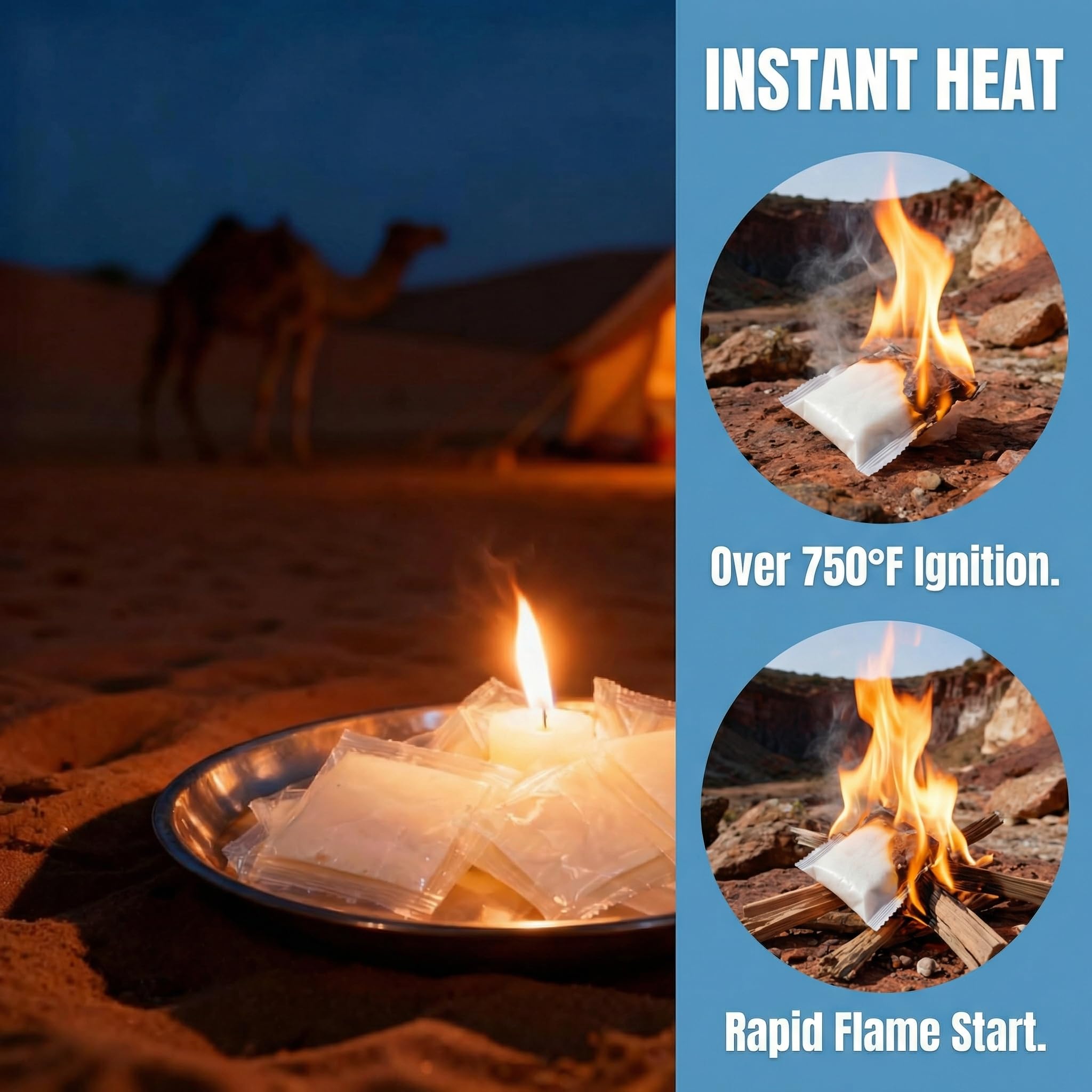 Rapid Fire Starters :Instant Fire Starters Ignite Any Fire Quickly. Burn for Up to 8 Minutes at Over 750 Degrees.If you need a longer burn time, simply add more pouches