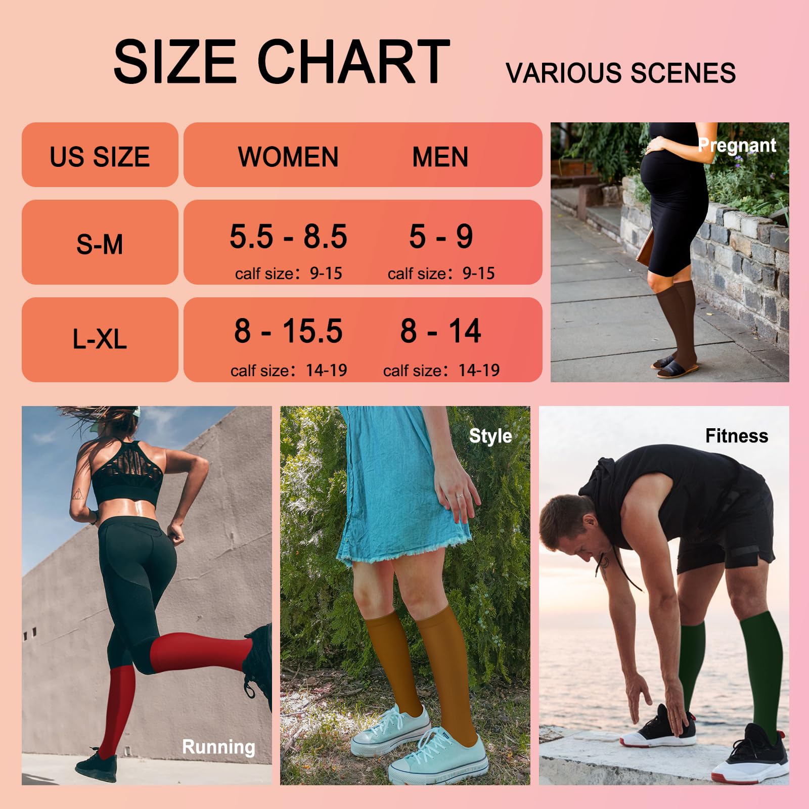 COMFORTABLE WEARING EXPERIENCE - Our compression socks fit snugly from toe to calf, injecting vitality into your skin. Delivers 360-degree stretch for greater flexibility and durability, without leaving marks on your skin. Wide Top Comfort Band Keeps the socks from pinching,chafing,or rolling down. All-Day comfort,support & energy,perfect for your active lifestyle. 4 PAIRS OF UNISEX : Our socks available in a variety of colors, unisex.