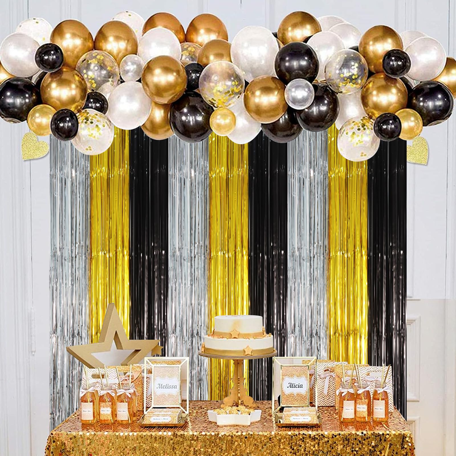 Widely Applications: This black gold and silver shimmer streamer foil curtain is perfect for New Years