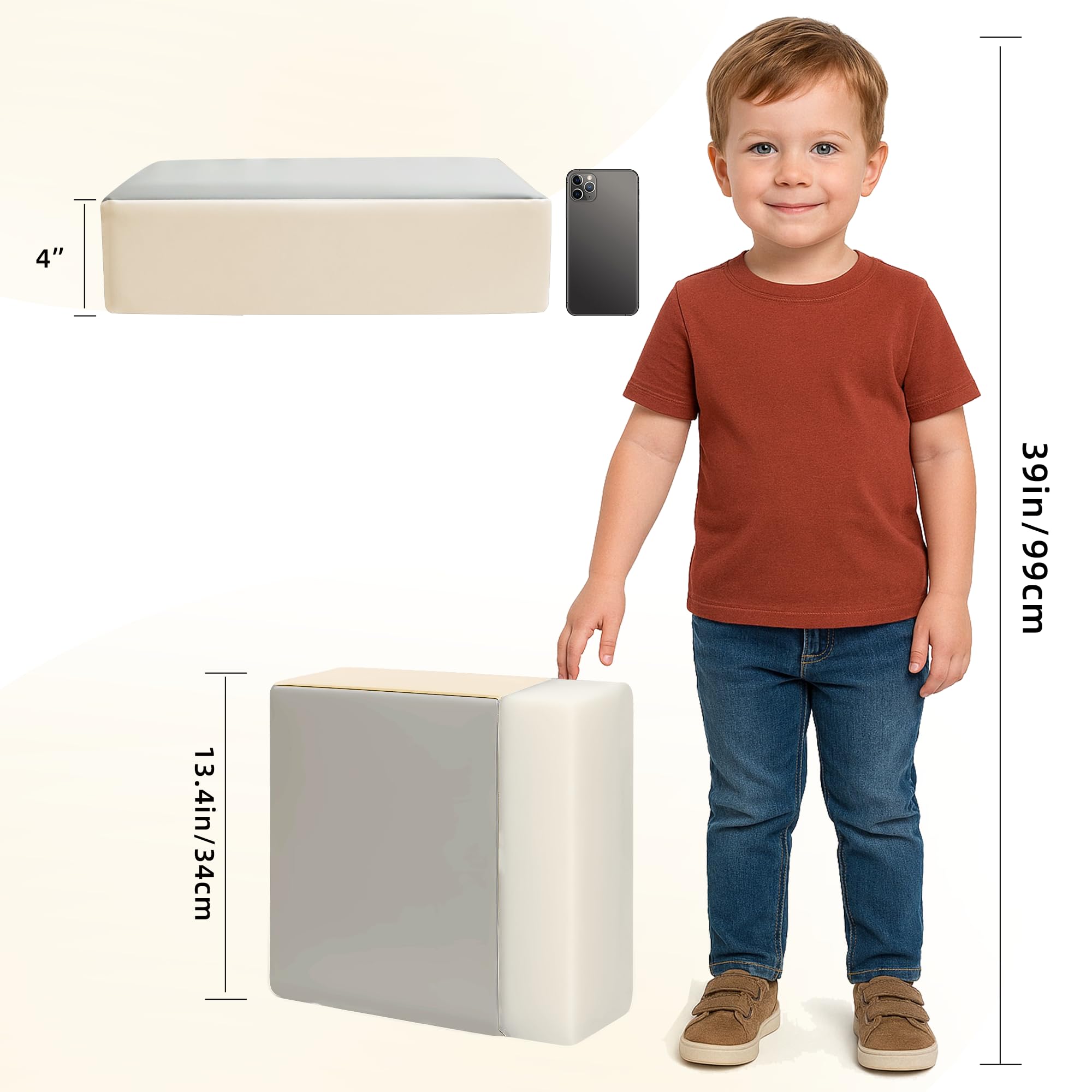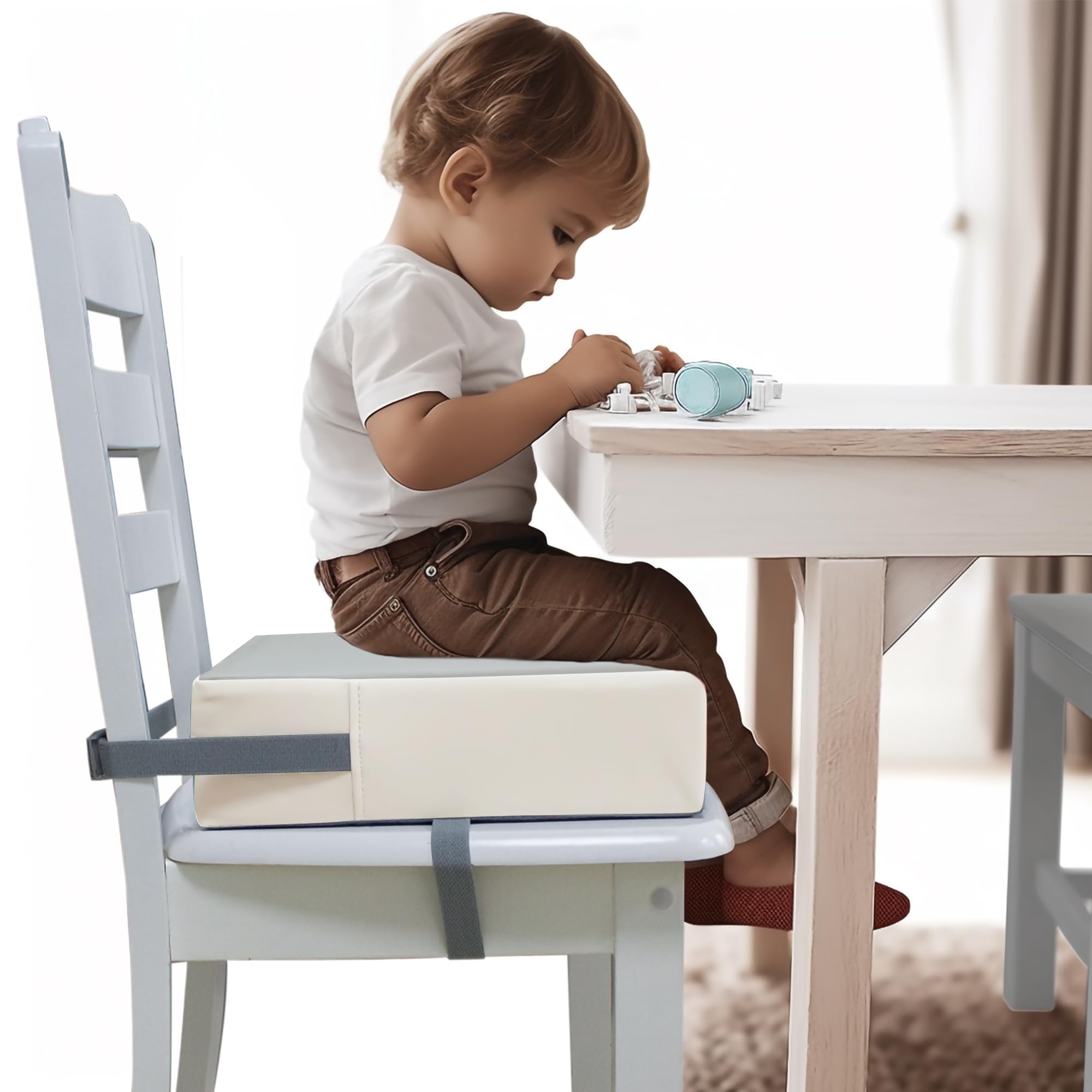 Comfortable Material: The booster seat for the dining table is made of high-quality PU synthetic leather and high-density sponge, and a layer of sponge is added inside the PU leather, which can not only bring comfort to the child but also ensure long-term use without deformation. The extra height also helps little ones reach food more easily and comfortably enjoy family meals at the table