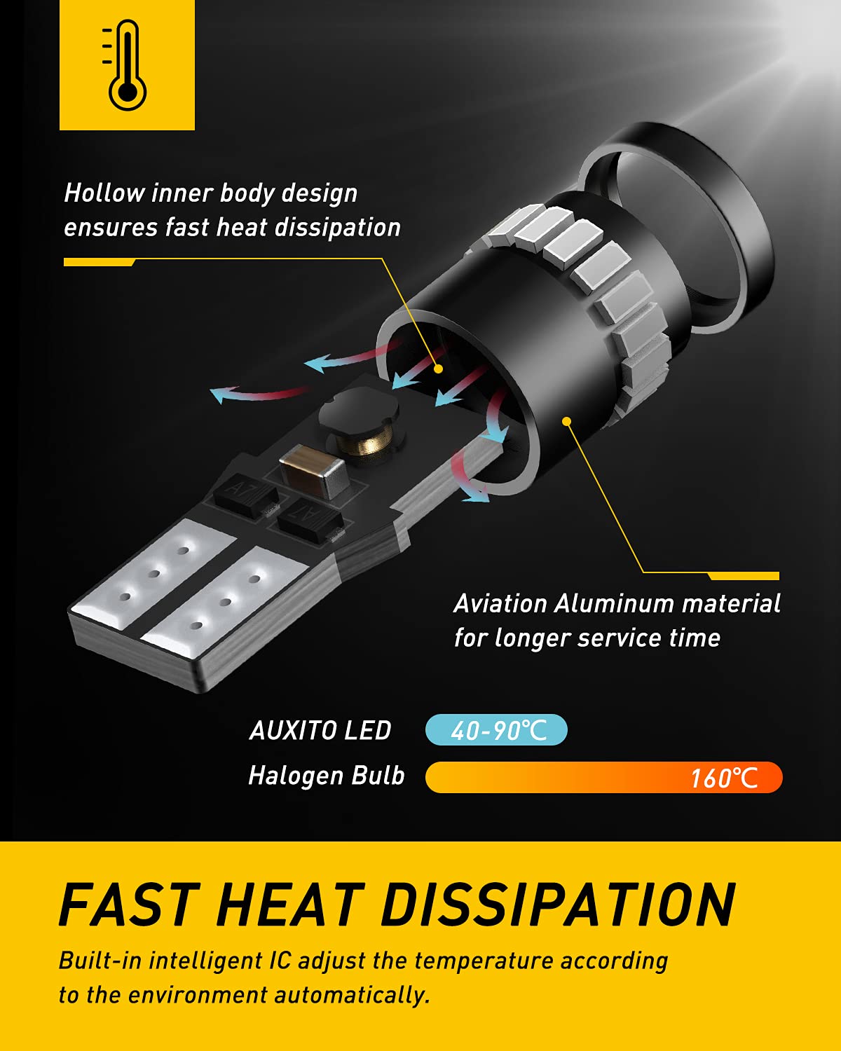 Fit bulb sizes: 168,175,194,2825,W5W,T10. Easy to install, just plug and play.Canbus error free, no error after installation